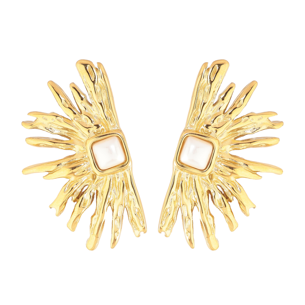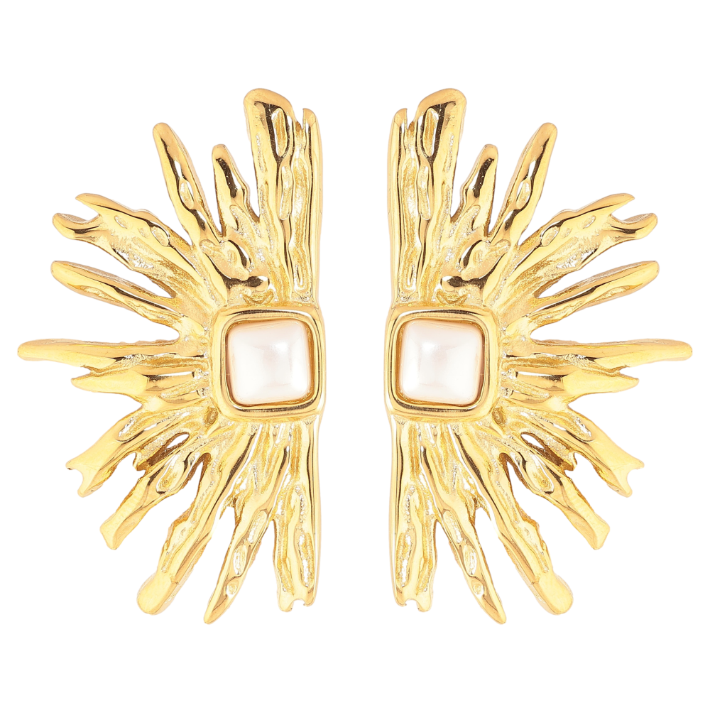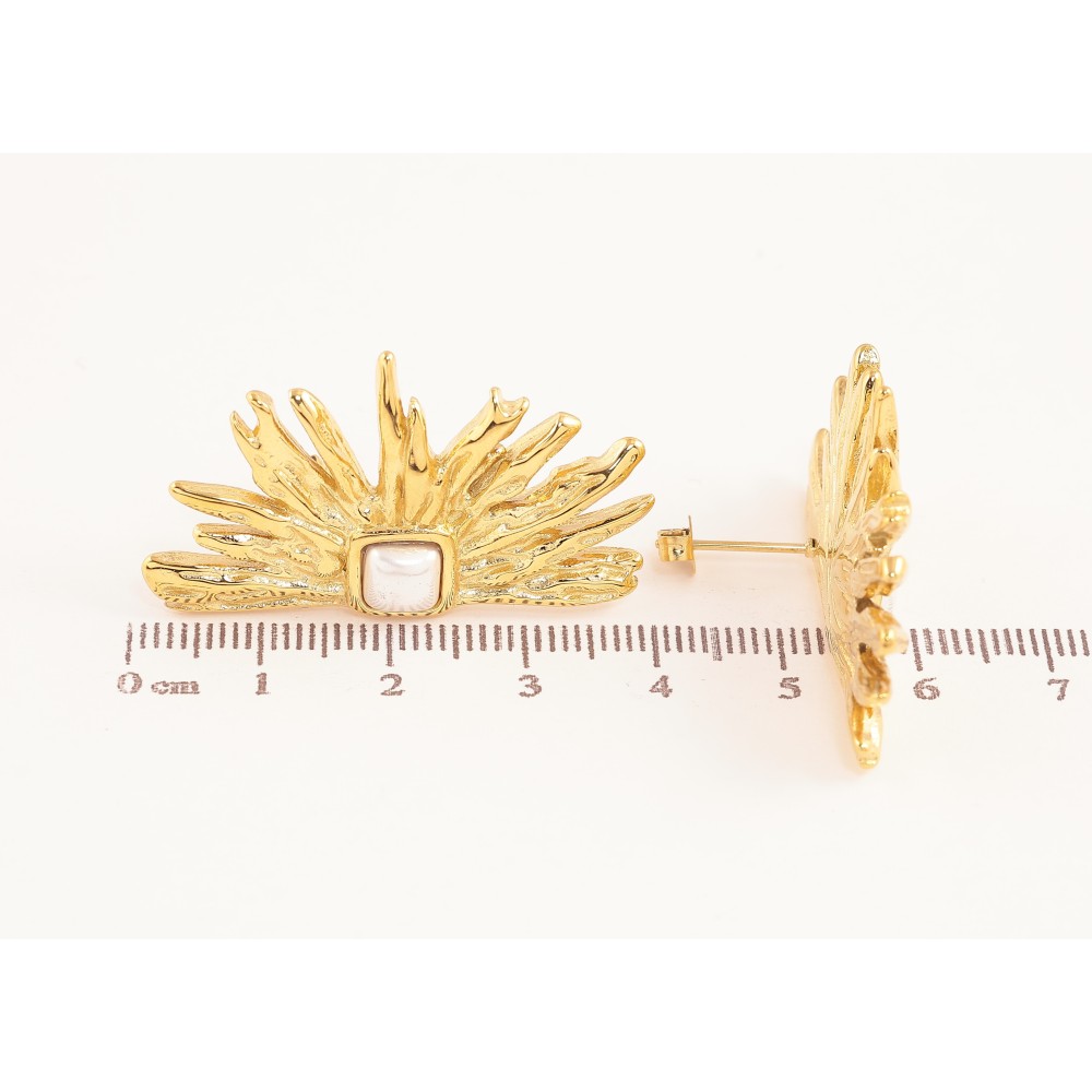 Сережки Нержавіюча сталь пусети "Візерунок з перлинами"