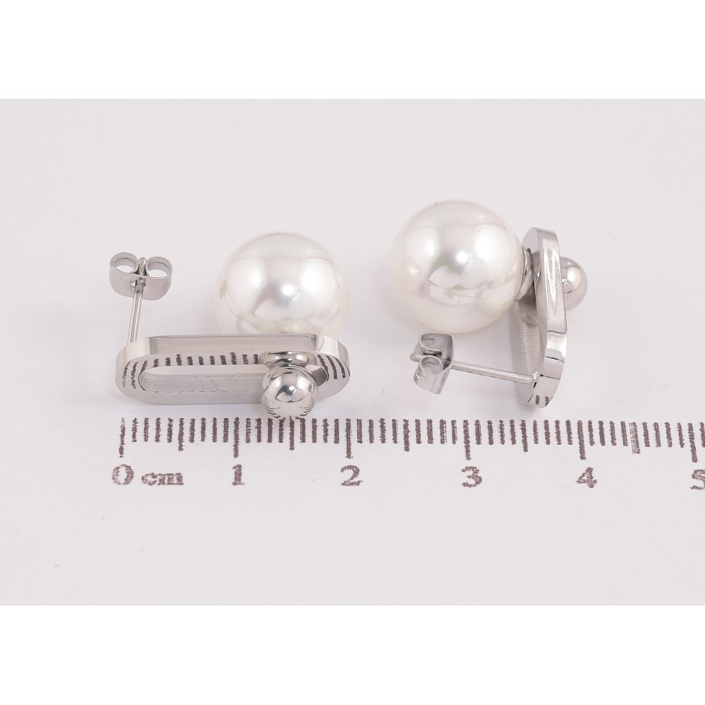 Сережки Нержавіюча сталь пусети "Візерунок з перлинами"