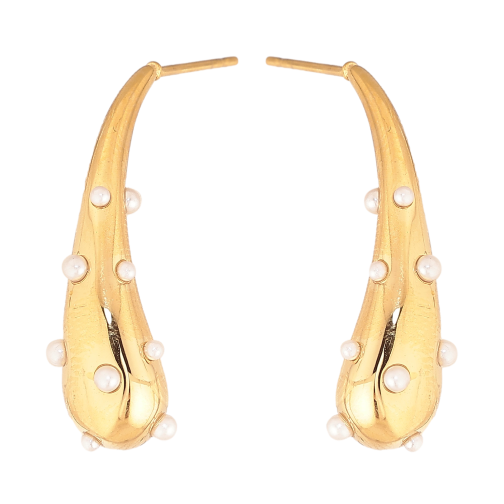 Сережки Нержавіюча сталь пусети "Візерунок з перлинними вставками"