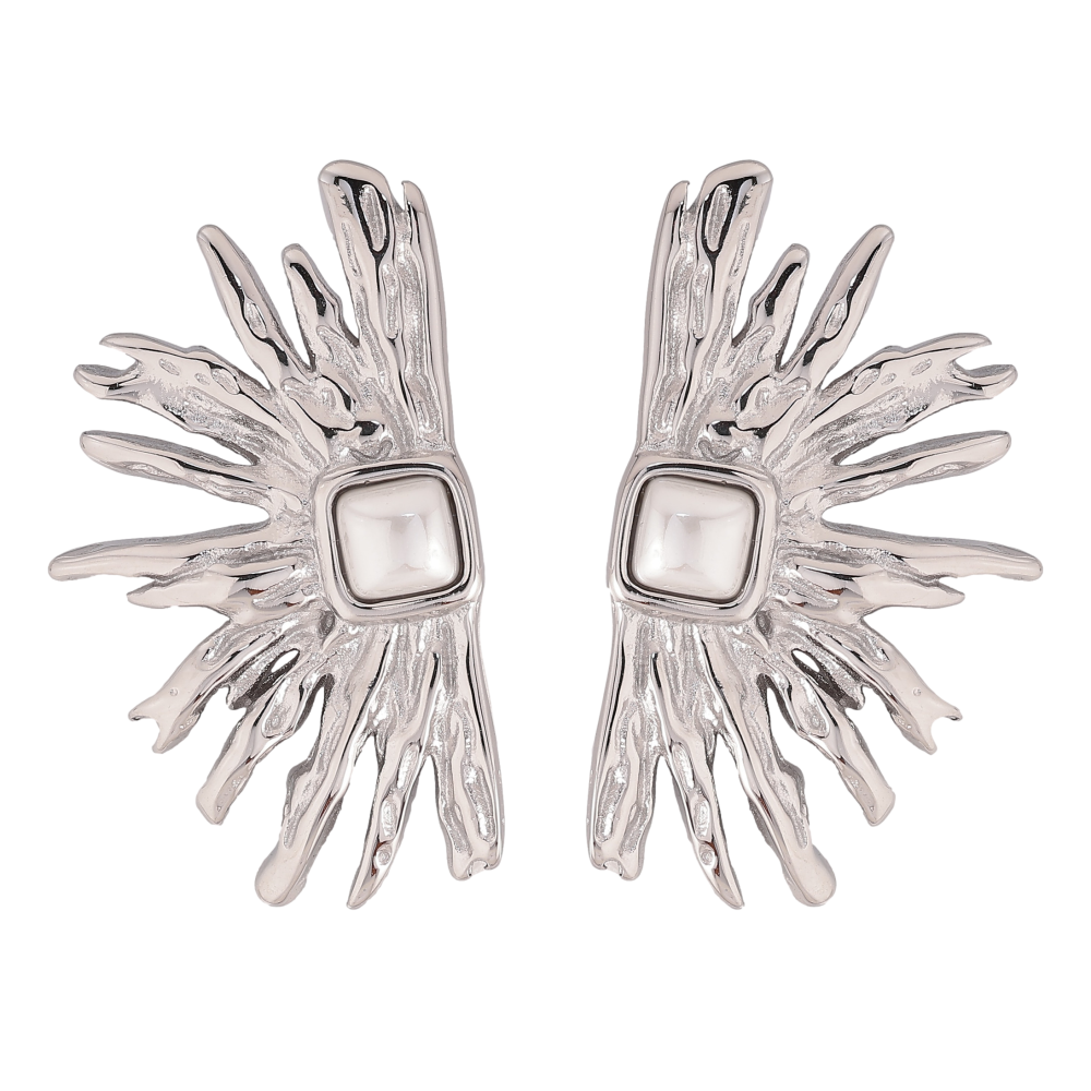 Сережки Нержавіюча сталь пусети "Візерунок з перлинними вставками"