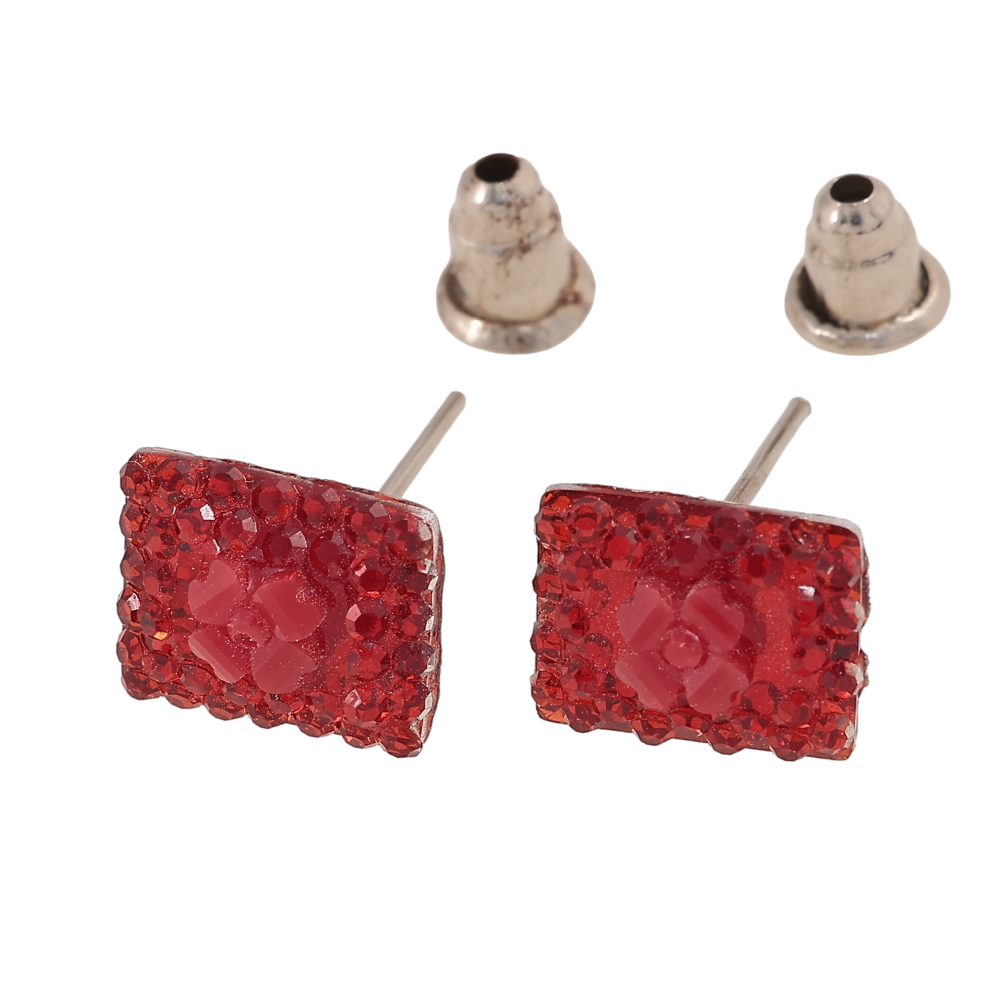 Сережки пусети "Червоні прямокутники зі стразами" 7х9мм