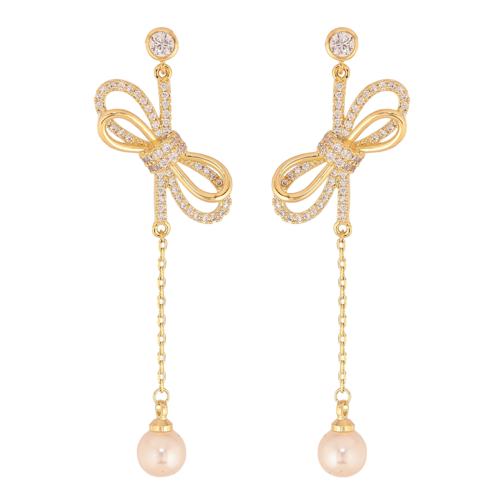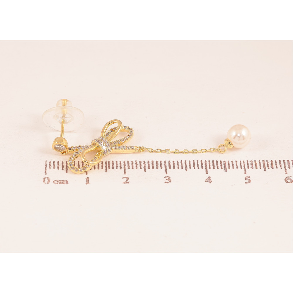 Сережки Xuping колір 14K з кристалами Swarovski пусети "Бантики з кристалами Clear та перлинами"