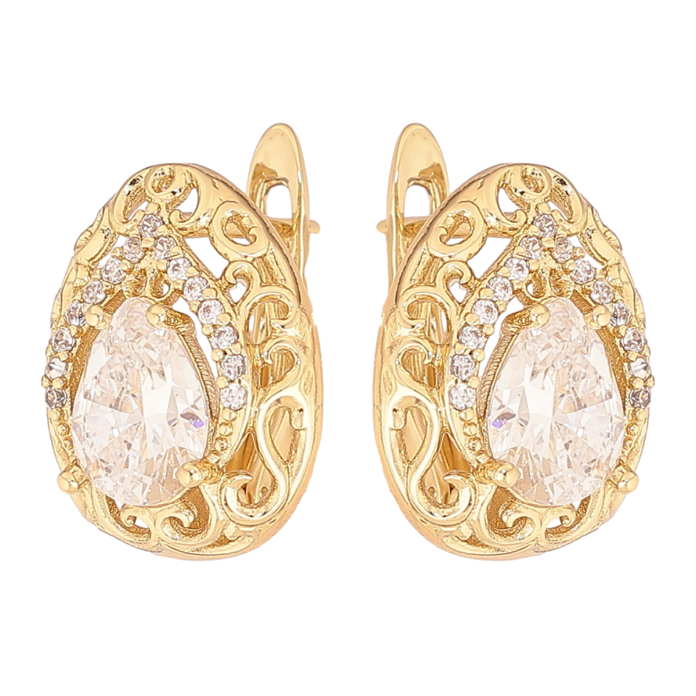 Сережки Xuping колір Позолота 14K англійський замок "Візерунок з кристалами"