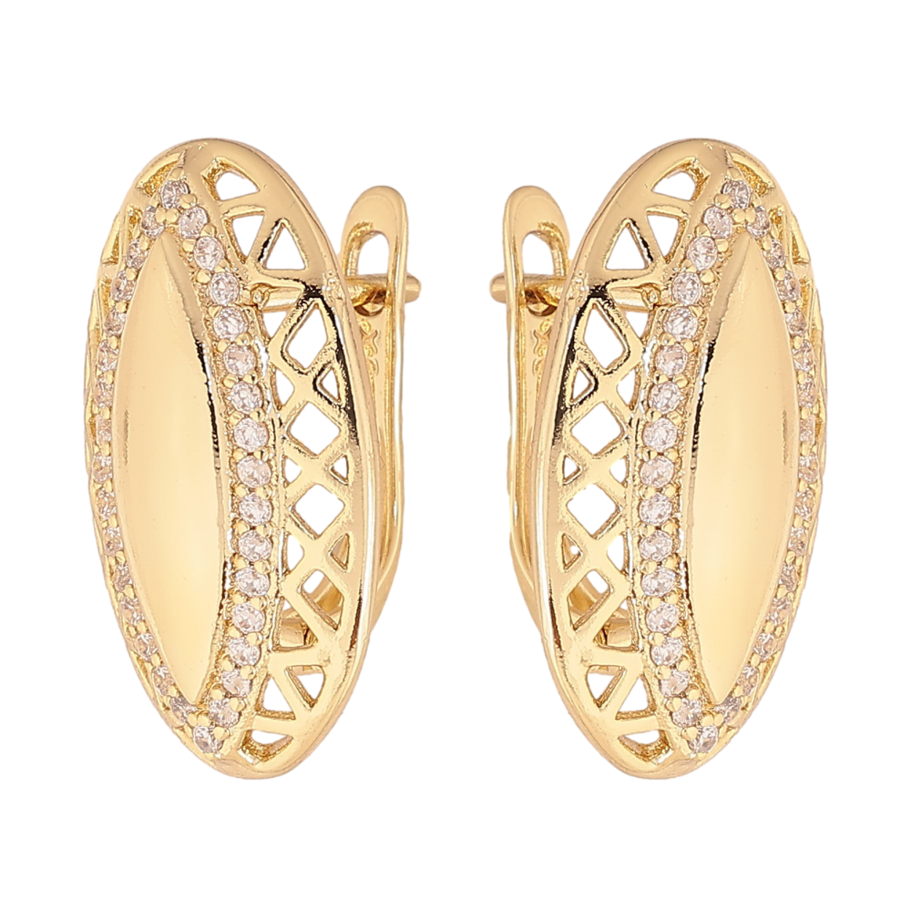 Сережки Xuping колір Позолота 14K англійський замок "Візерунок з кристалами"
