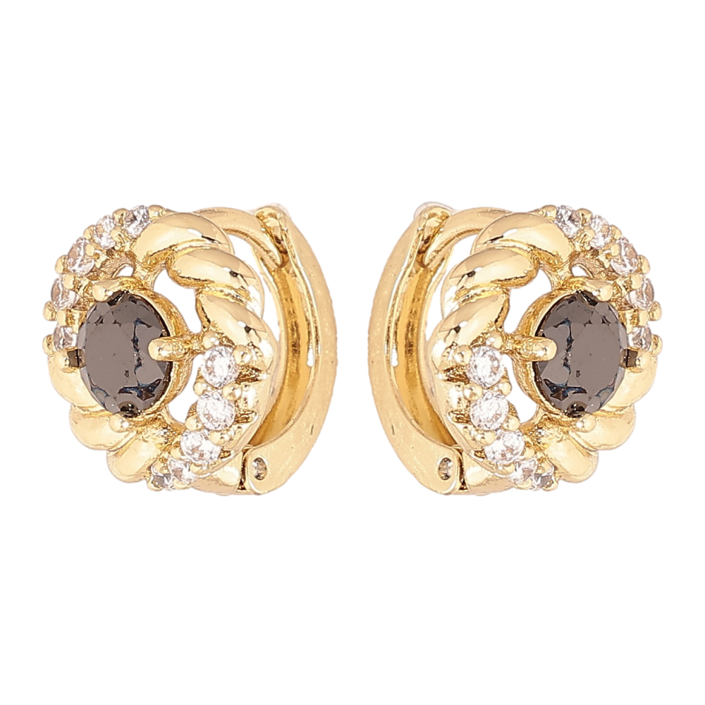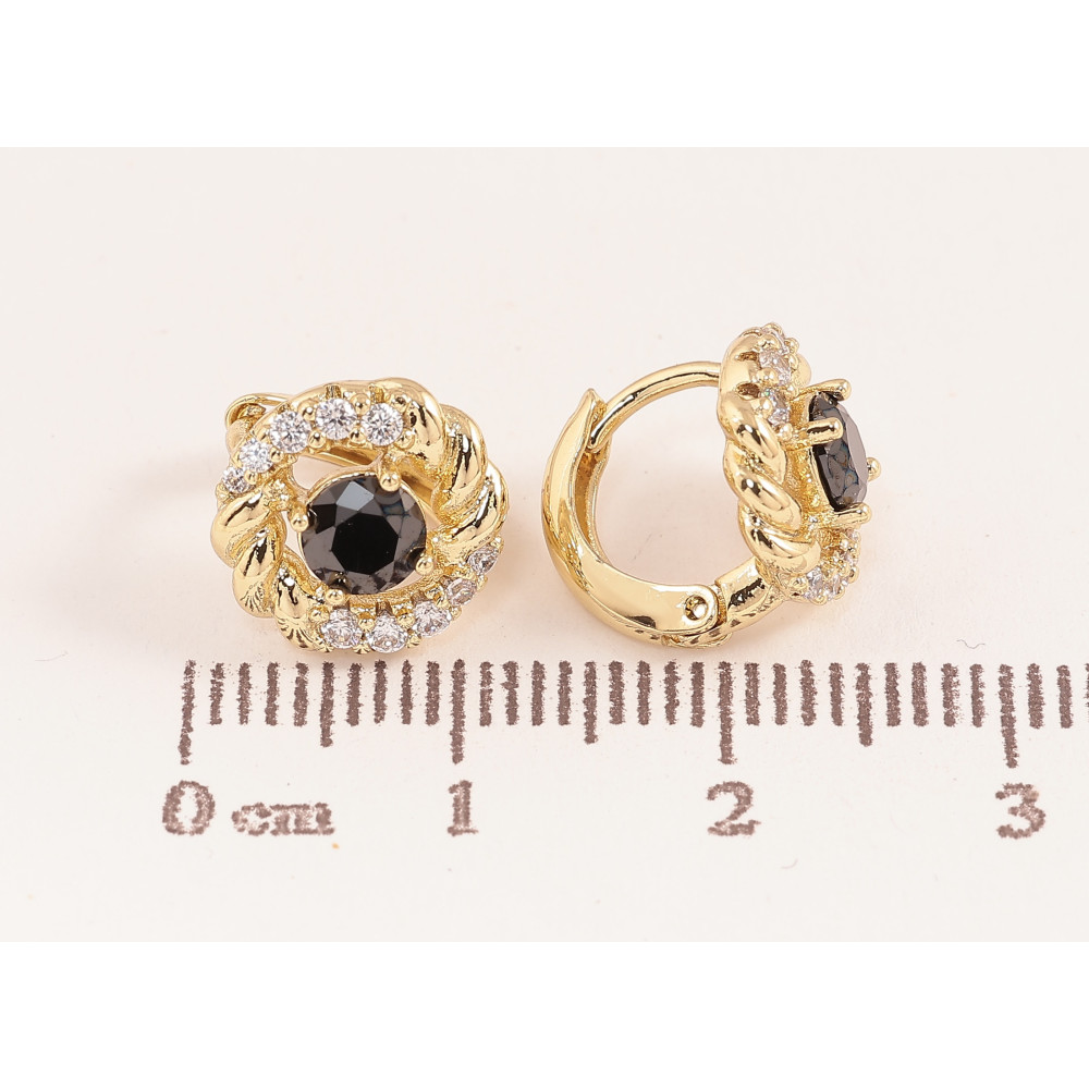 Сережки Xuping колір Позолота 14K колечка "Візерунок з чорним кристалом"