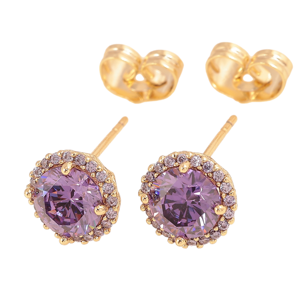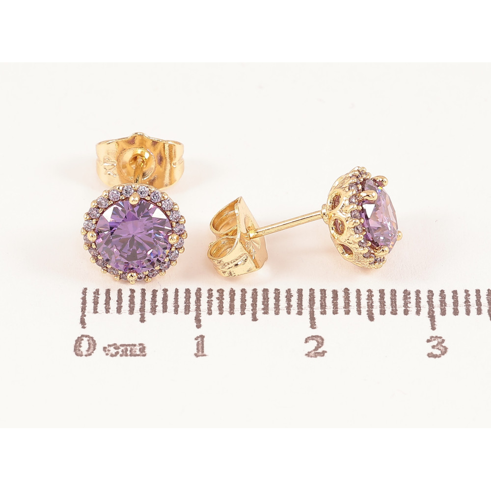 Сережки Xuping колір Позолота 14K пусети "Бузові кристали в обрамленні" ø 9мм