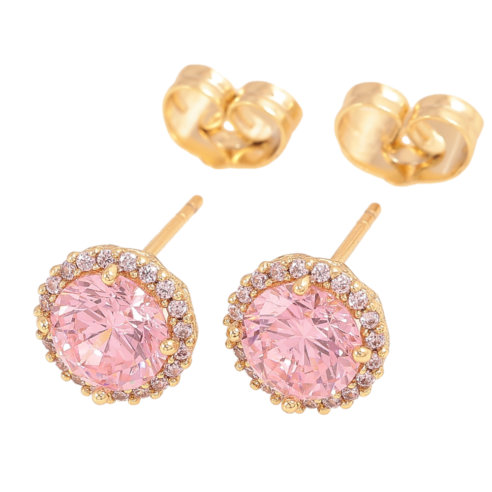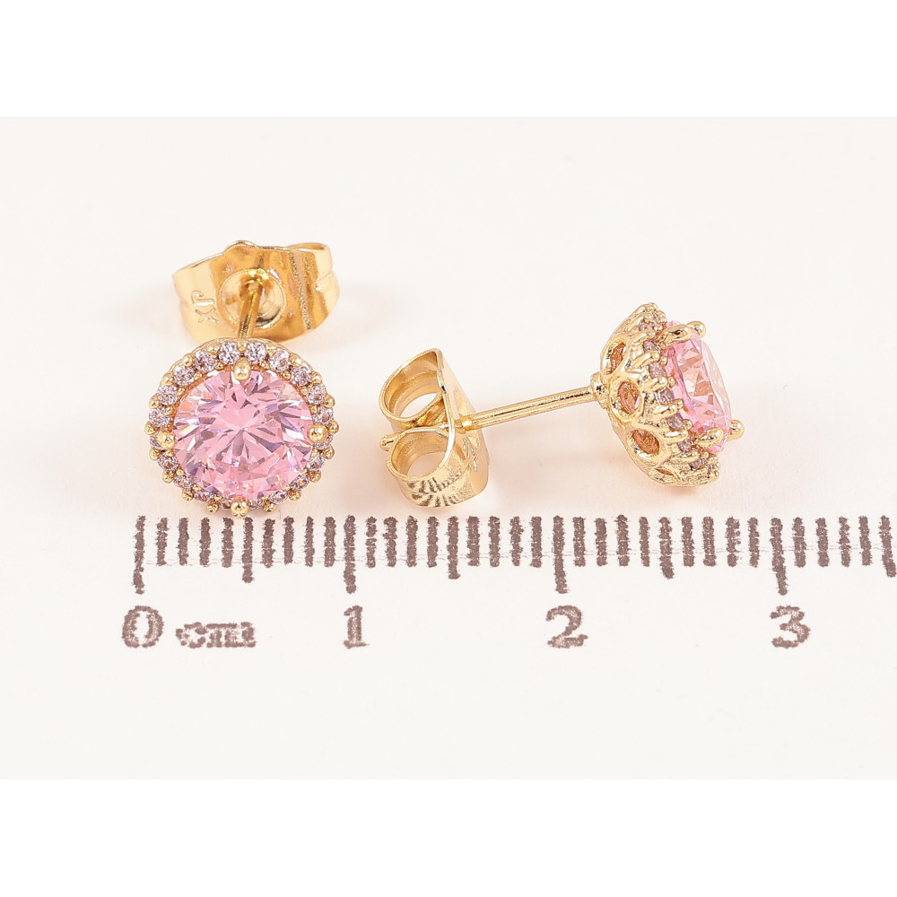 Сережки Xuping колір Позолота 14K пусети "Рожеві кристали в обрамленні" ø 9мм