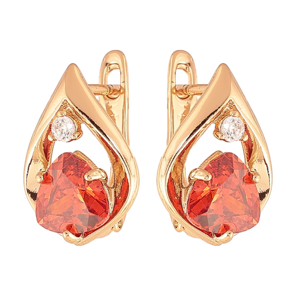Сережки Xuping колір позолота 18K англійський замок крапельки з червоними кристалами