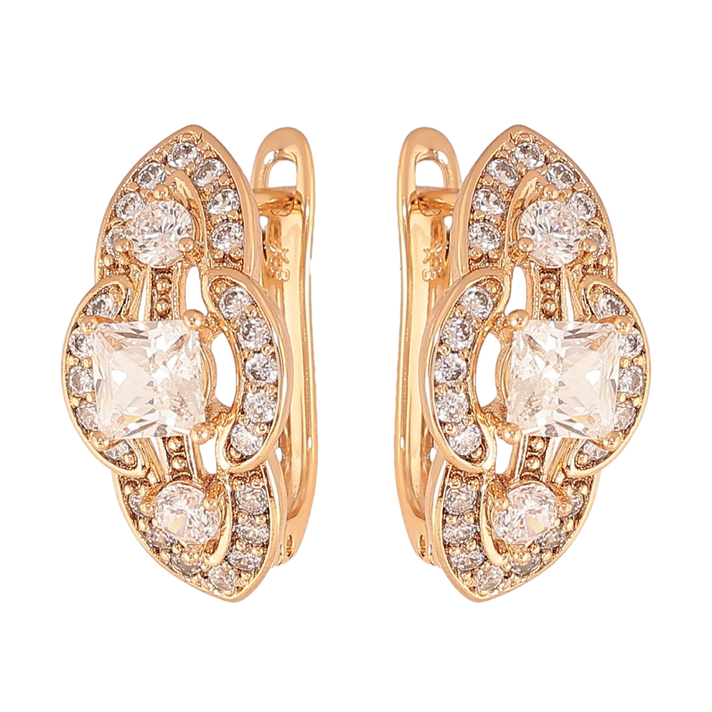 SALE -15% Сережки Xuping колір позолота 18K англійський замок візерунок з  кристалами фото №1
