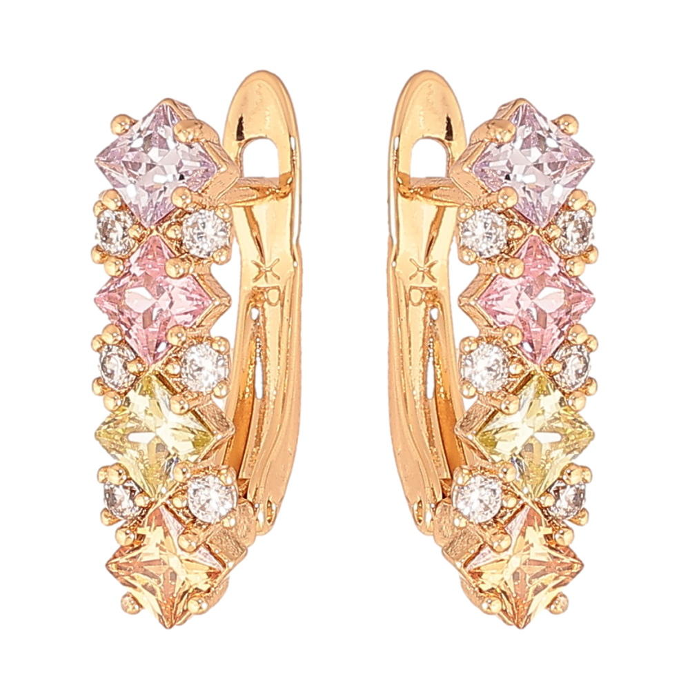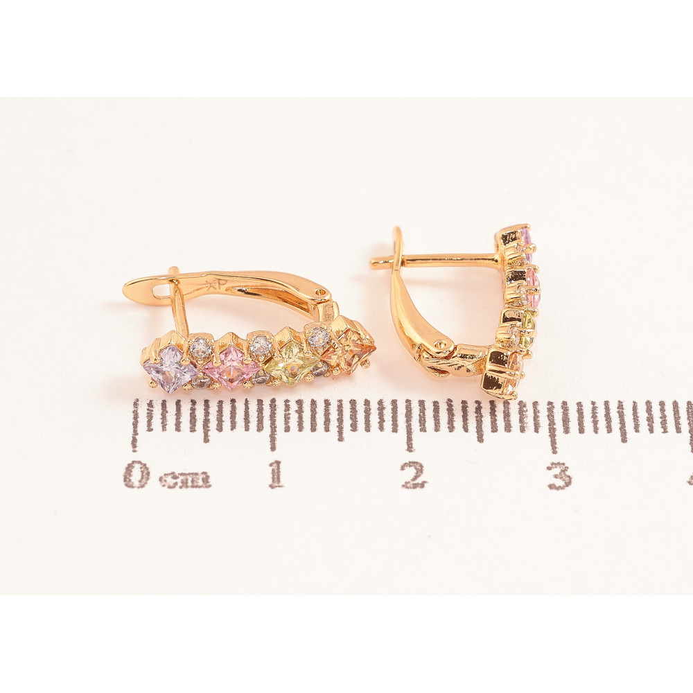 Сережки Xuping колір позолота 18K англійський замок візерунок з різнокольоровими кристалами
