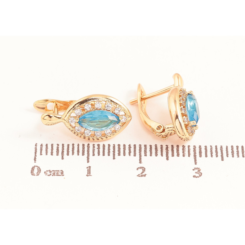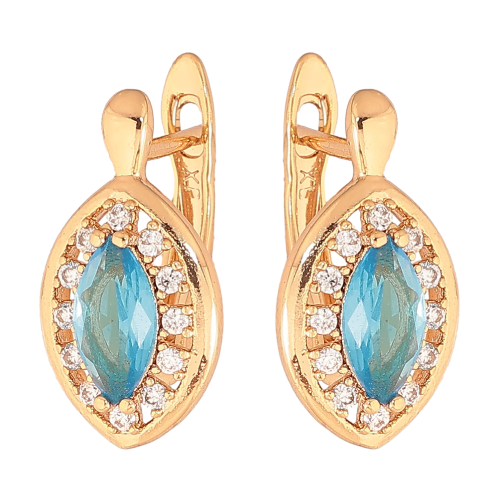 Сережки Xuping колір Позолота 18K англійський замок "Блакитні кристали в обрамленні"