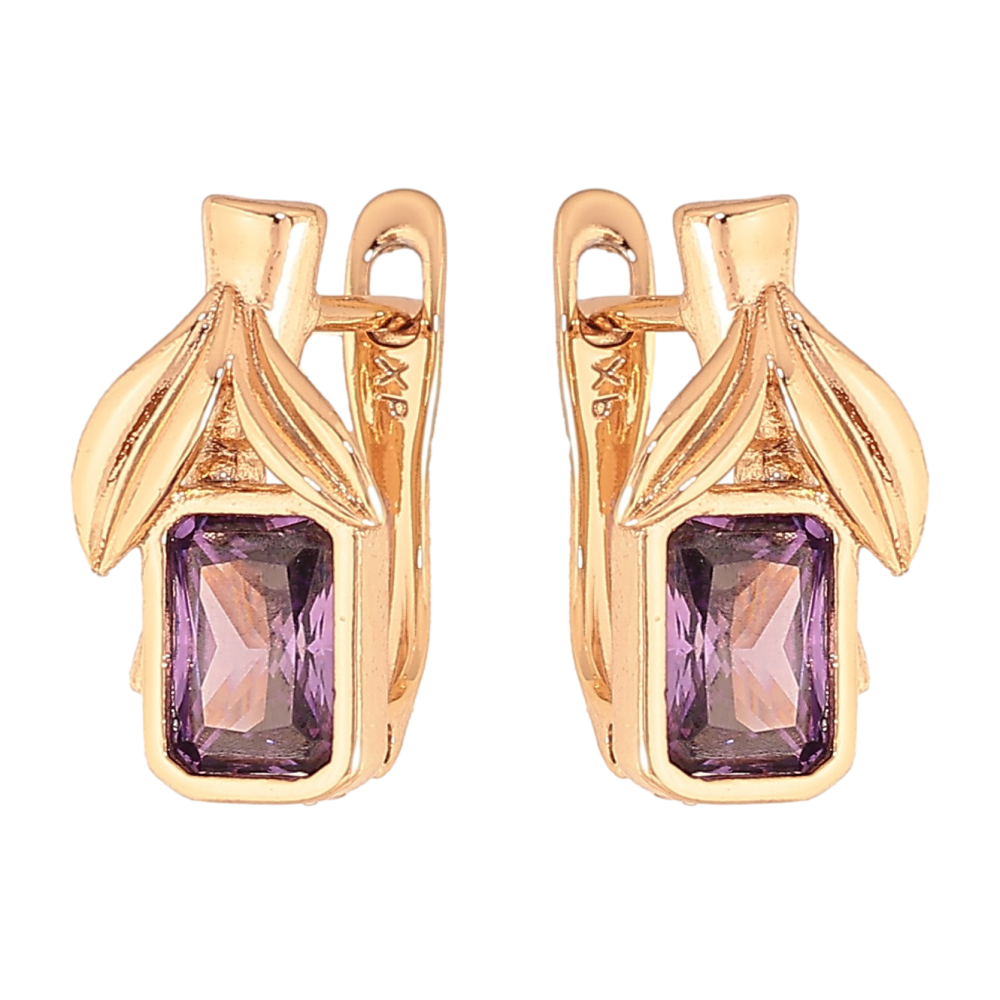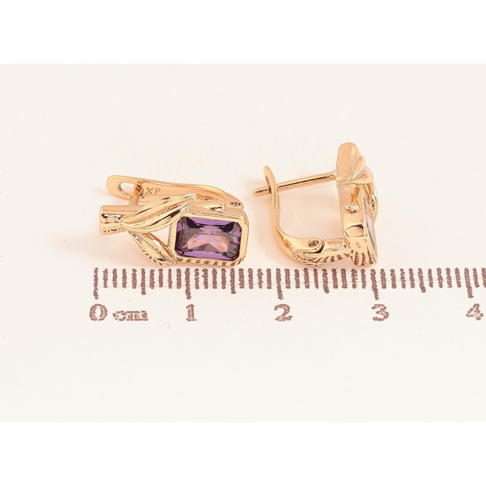 Сережки Xuping колір Позолота 18К англійський замок "Бузкові кристальні ягідки"