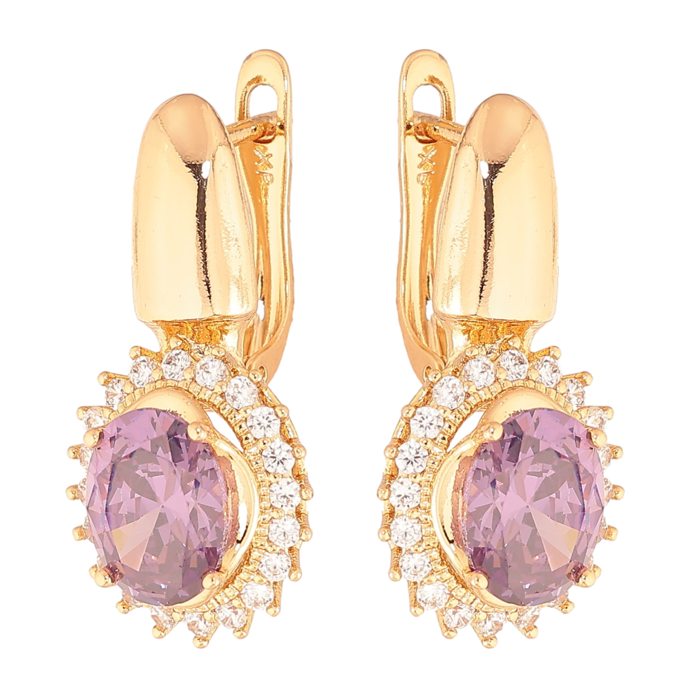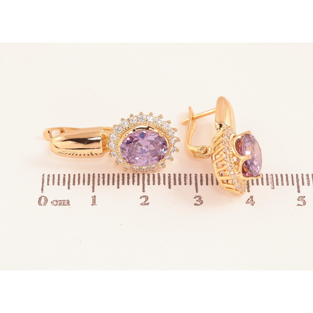 Сережки Xuping колір Позолота 18K англійський замок "Бузкові кристали в обрамленні"