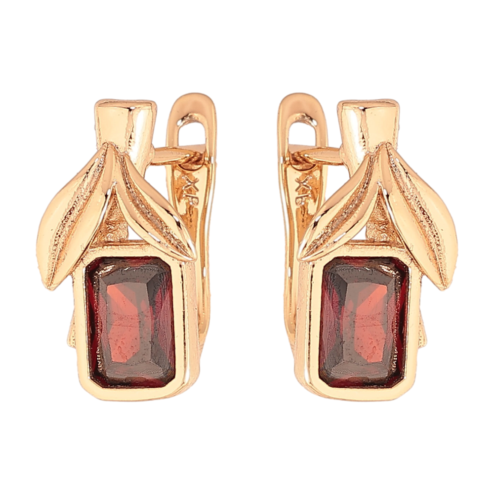 Сережки Xuping колір Позолота 18К англійський замок "Червоні кристальні ягідки"