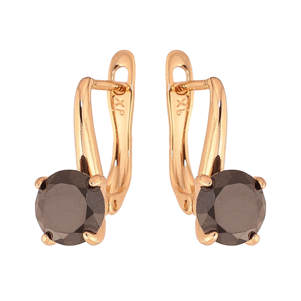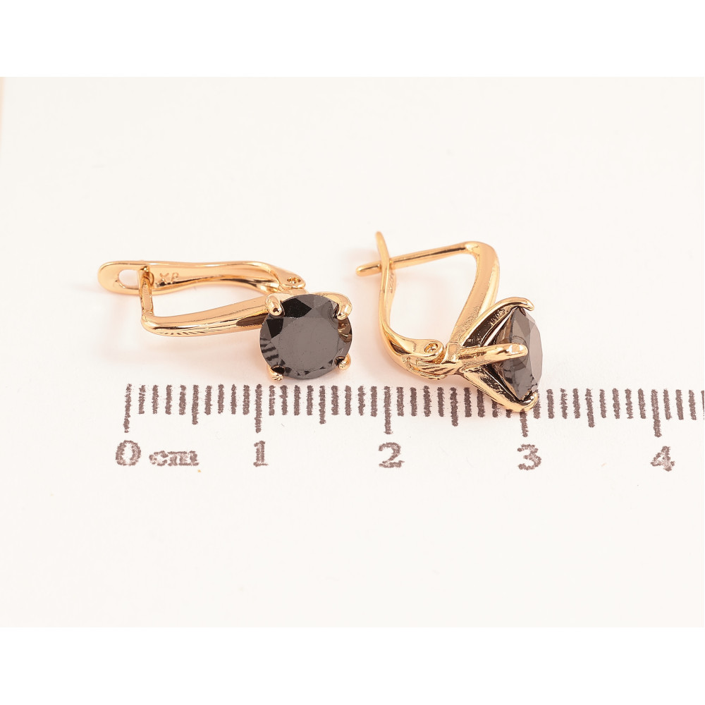 Сережки Xuping колір Позолота 18K англійський замок "Чорні кристали на дужках" ø 7мм