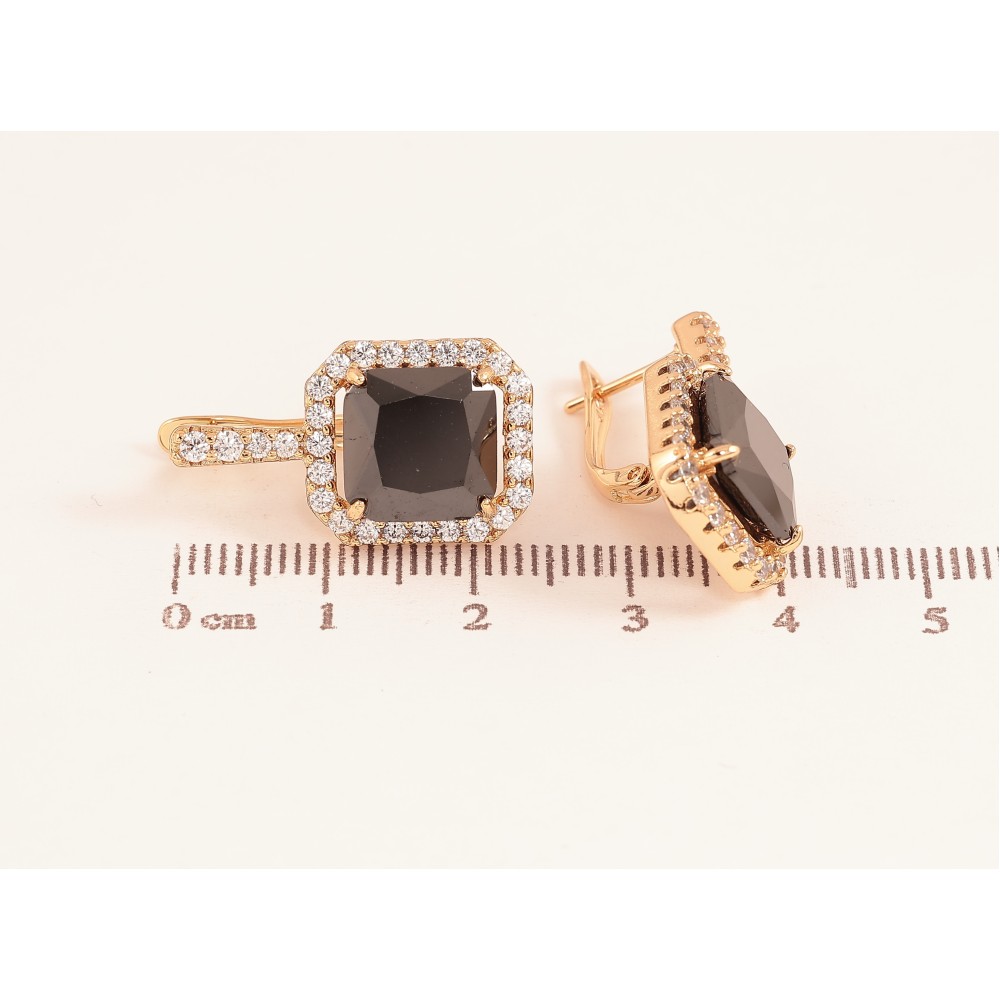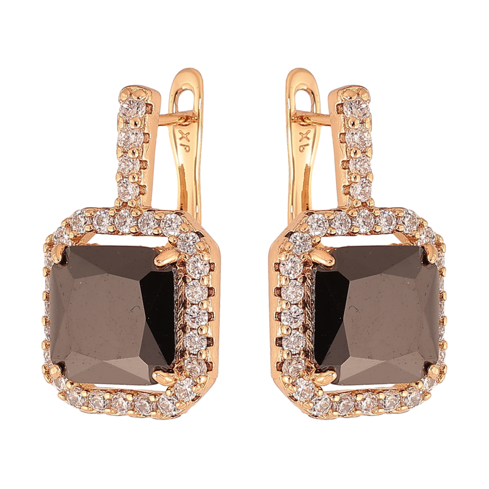 Сережки Xuping колір Позолота 18К англійський замок "Чорні кристали в обрамленні"