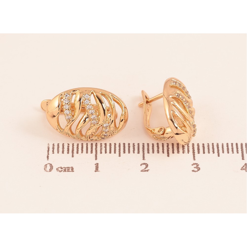 Сережки Xuping колір Позолота 18К англійський замок "Декоративний візерунок з кристалами"