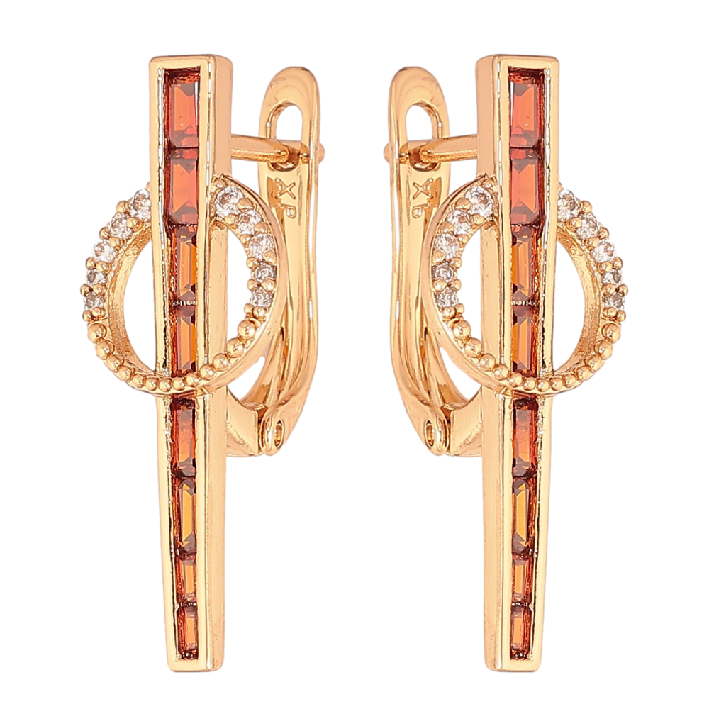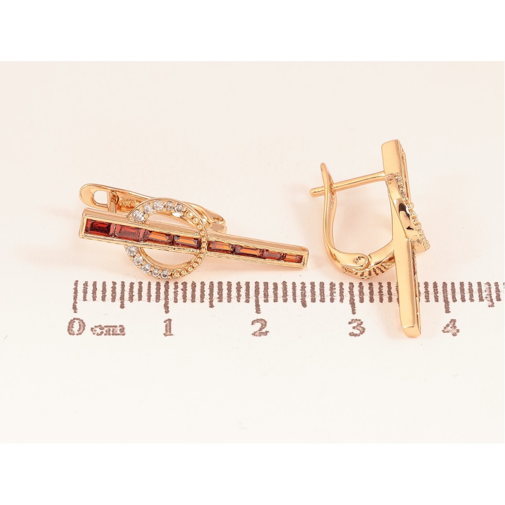 Сережки Xuping колір Позолота 18К англійський замок "Доріжки червоних кристалів з колечками"