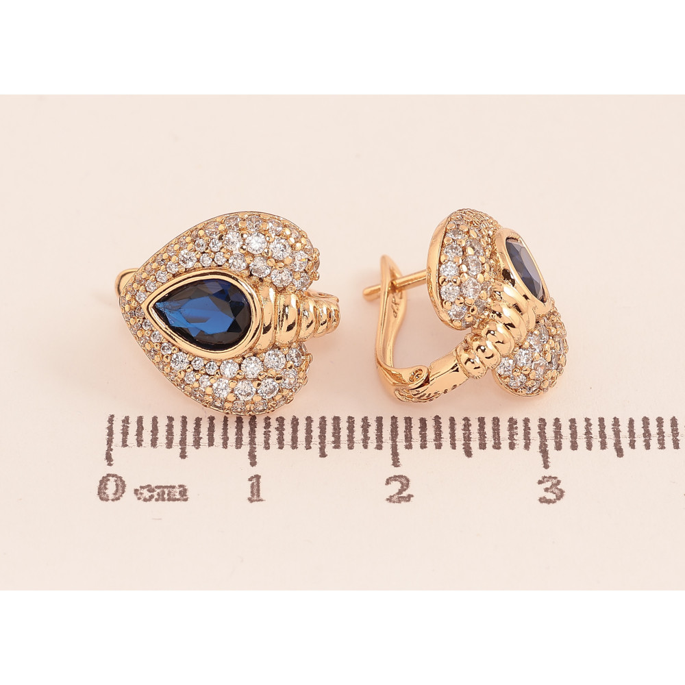 Сережки Xuping колір Позолота 18К англійський замок "Інкрустація із синіми кристалами"