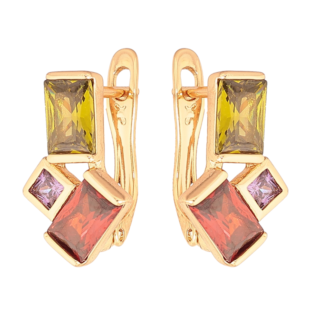 Сережки Xuping колір Позолота 18K англійський замок "Кольорові кристали"