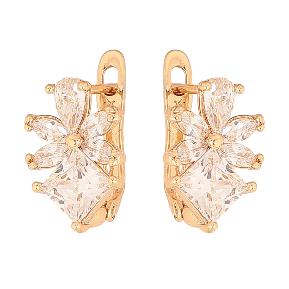 Сережки Xuping колір Позолота 18К англійський замок "Кристальні квіточки"
