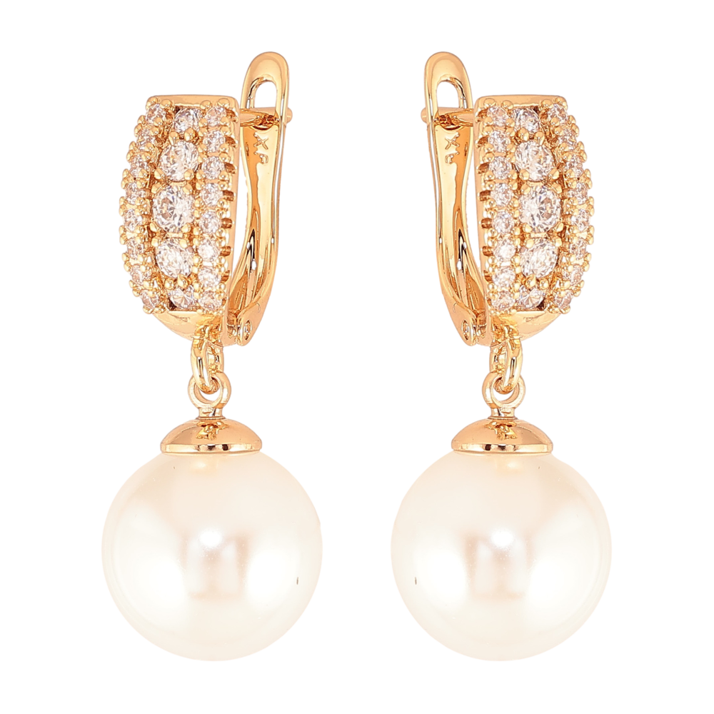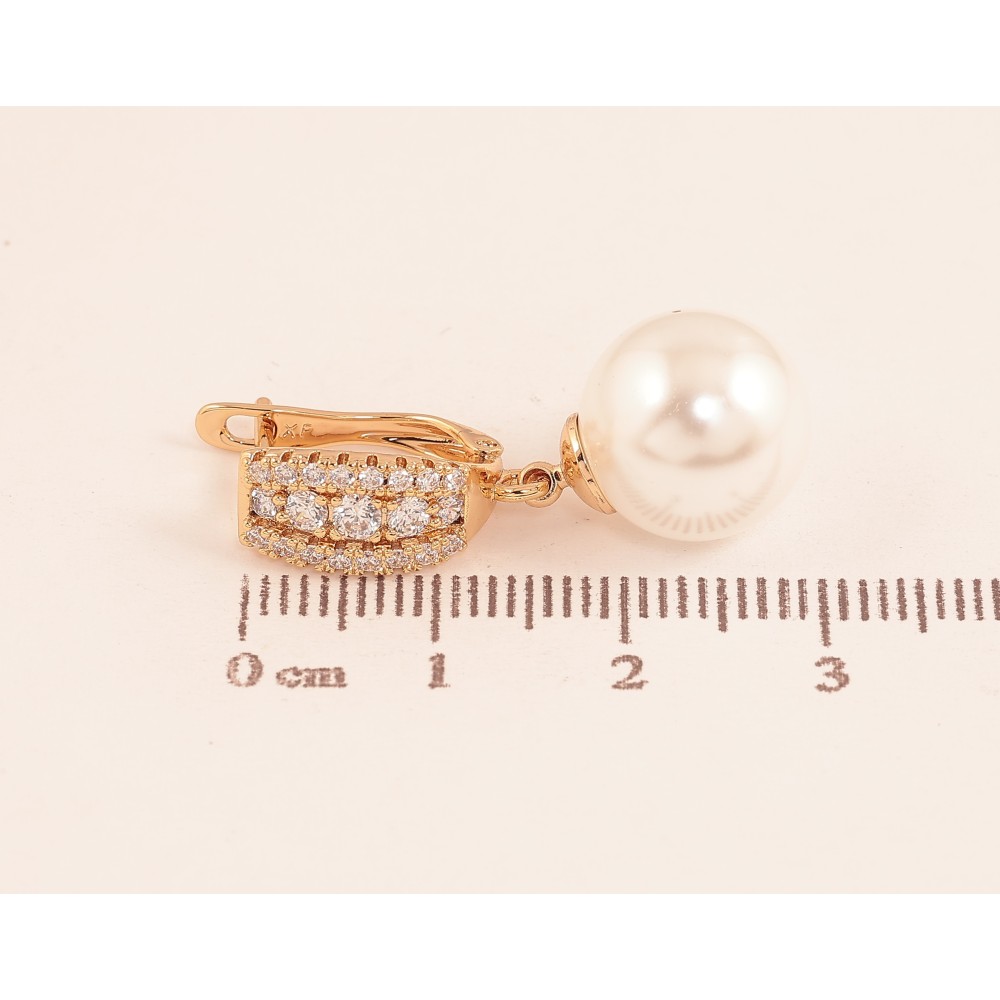 Сережки Xuping колір Позолота 18К англійський замок "Перлинні підвіски"