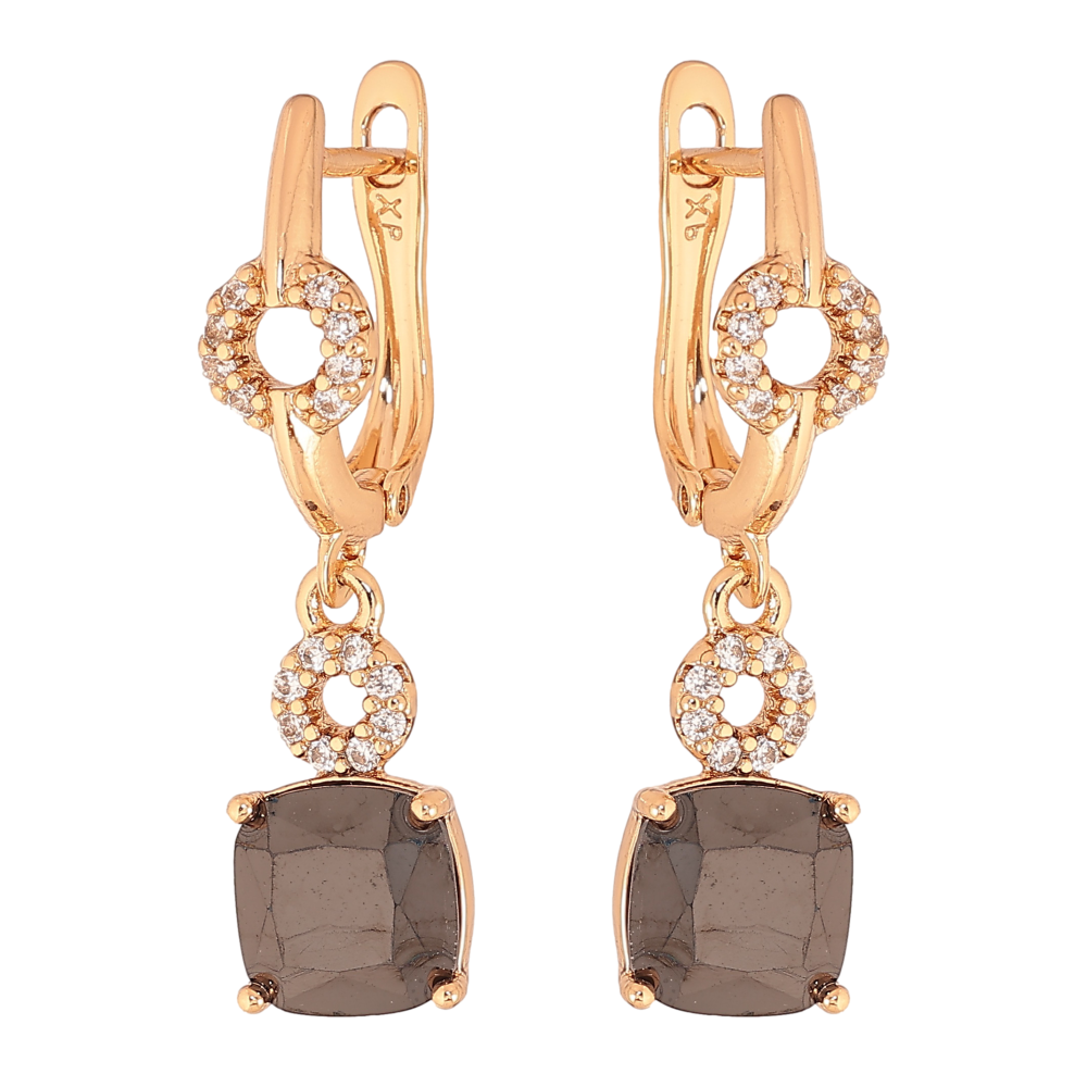 Сережки Xuping колір Позолота 18K англійський замок "Підвіски з чорними кристалами"