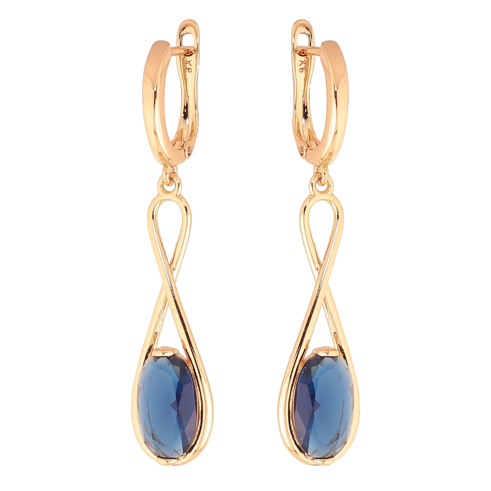 Сережки Xuping колір Позолота 18К англійський замок "Підвіски з синіми кристалами"