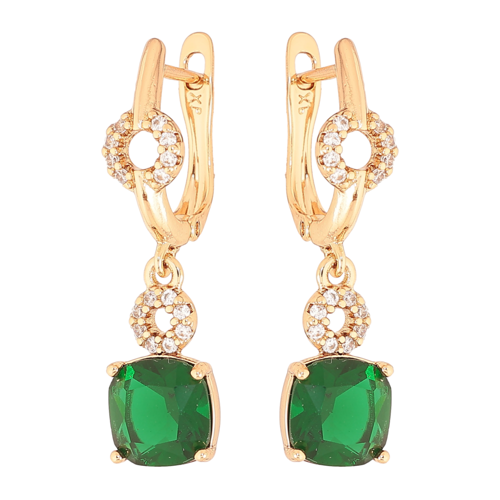 Сережки Xuping колір Позолота 18K англійський замок "Підвіски з зеленими кристалами"