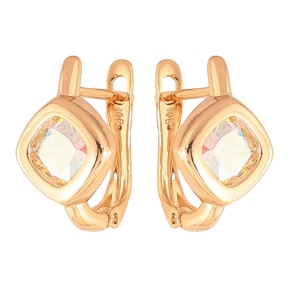 Сережки Xuping колір Позолота 18K англійський замок "Райдужні кристальні ромби"