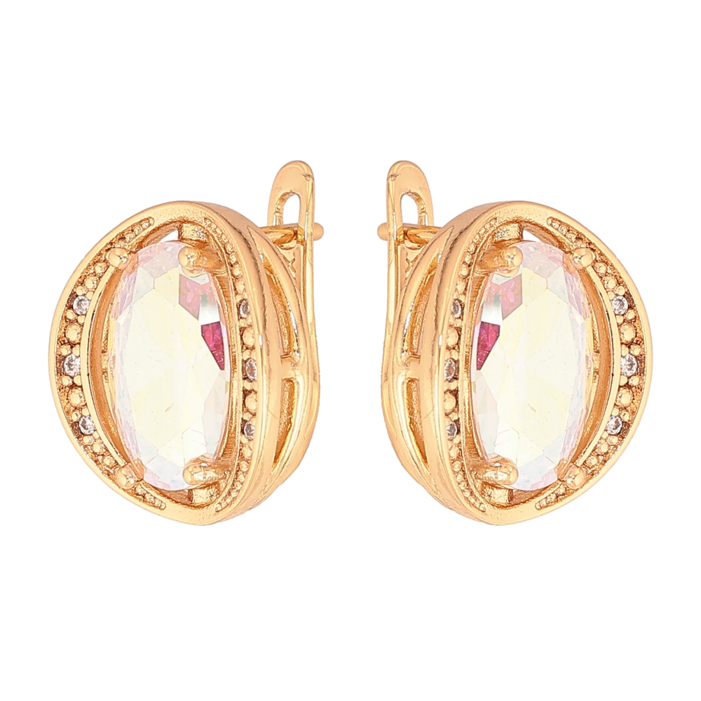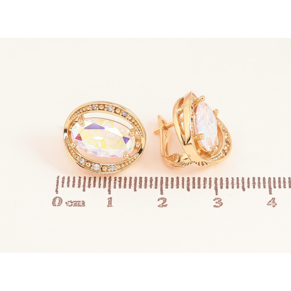 Сережки Xuping колір Позолота 18К англійський замок "Райдужні кристали в обрамленні"