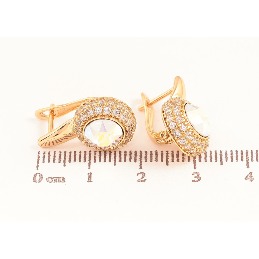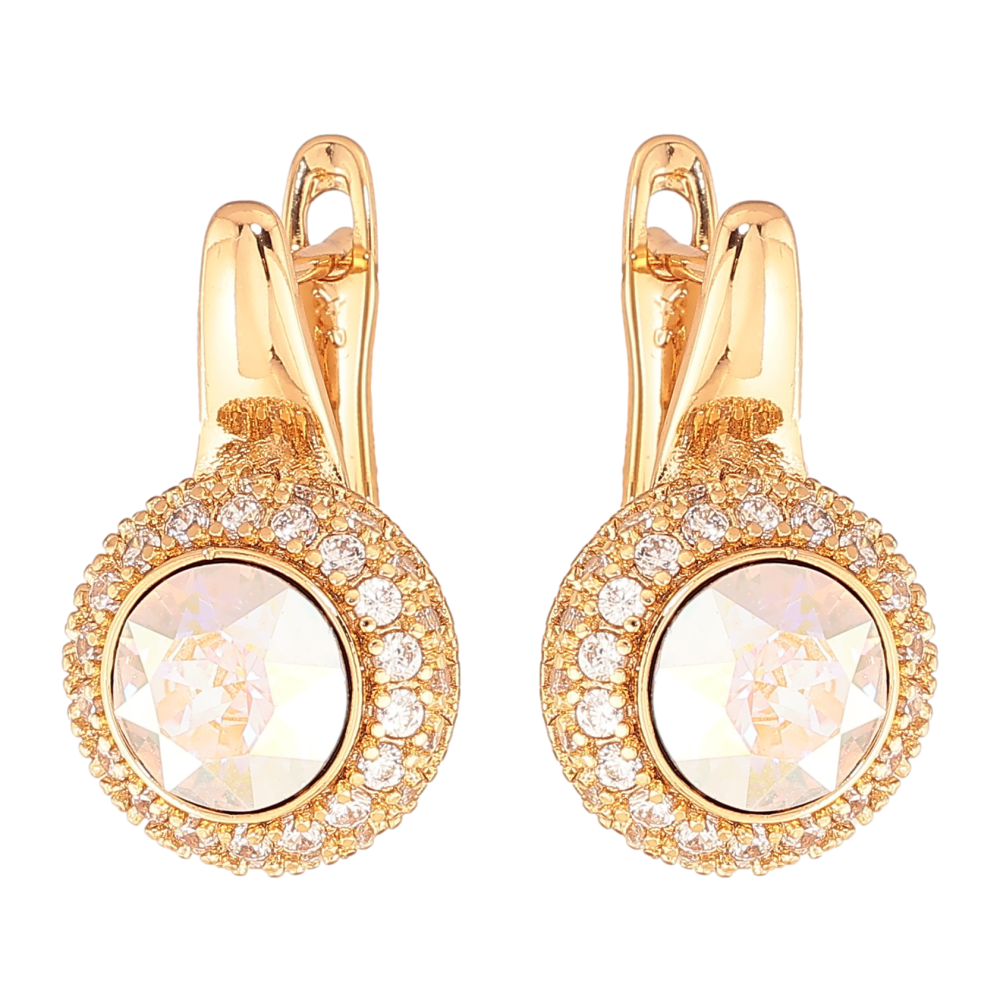 Сережки Xuping колір Позолота 18K англійський замок "Райдужні кристали в обрамленні дрібних кристалів"