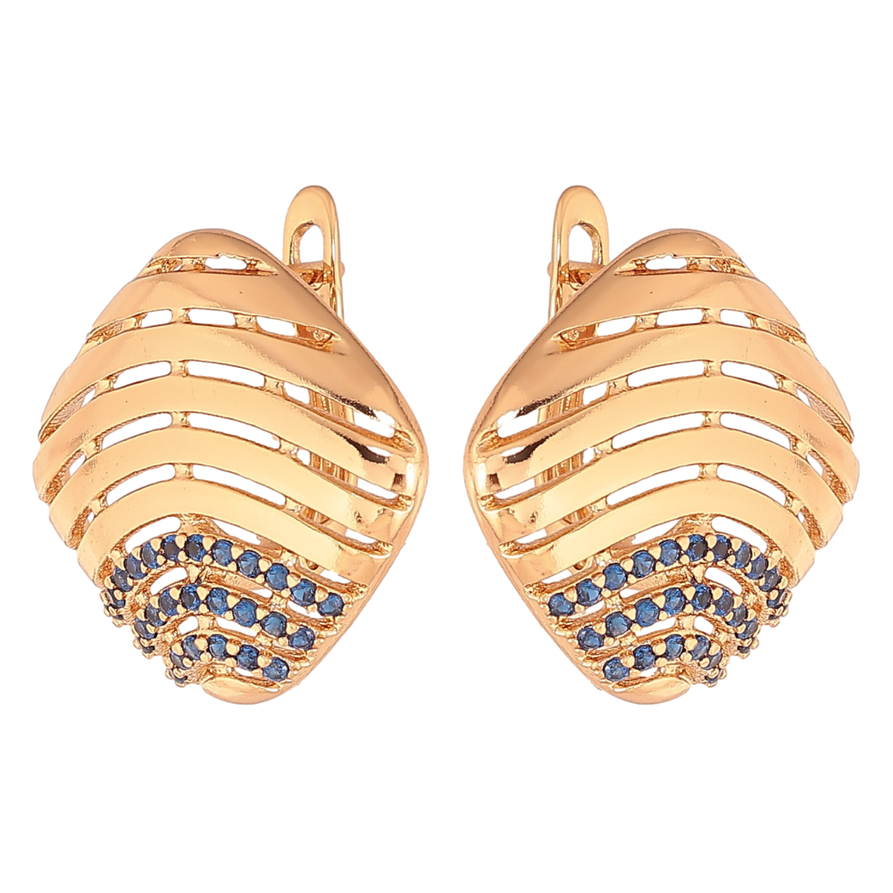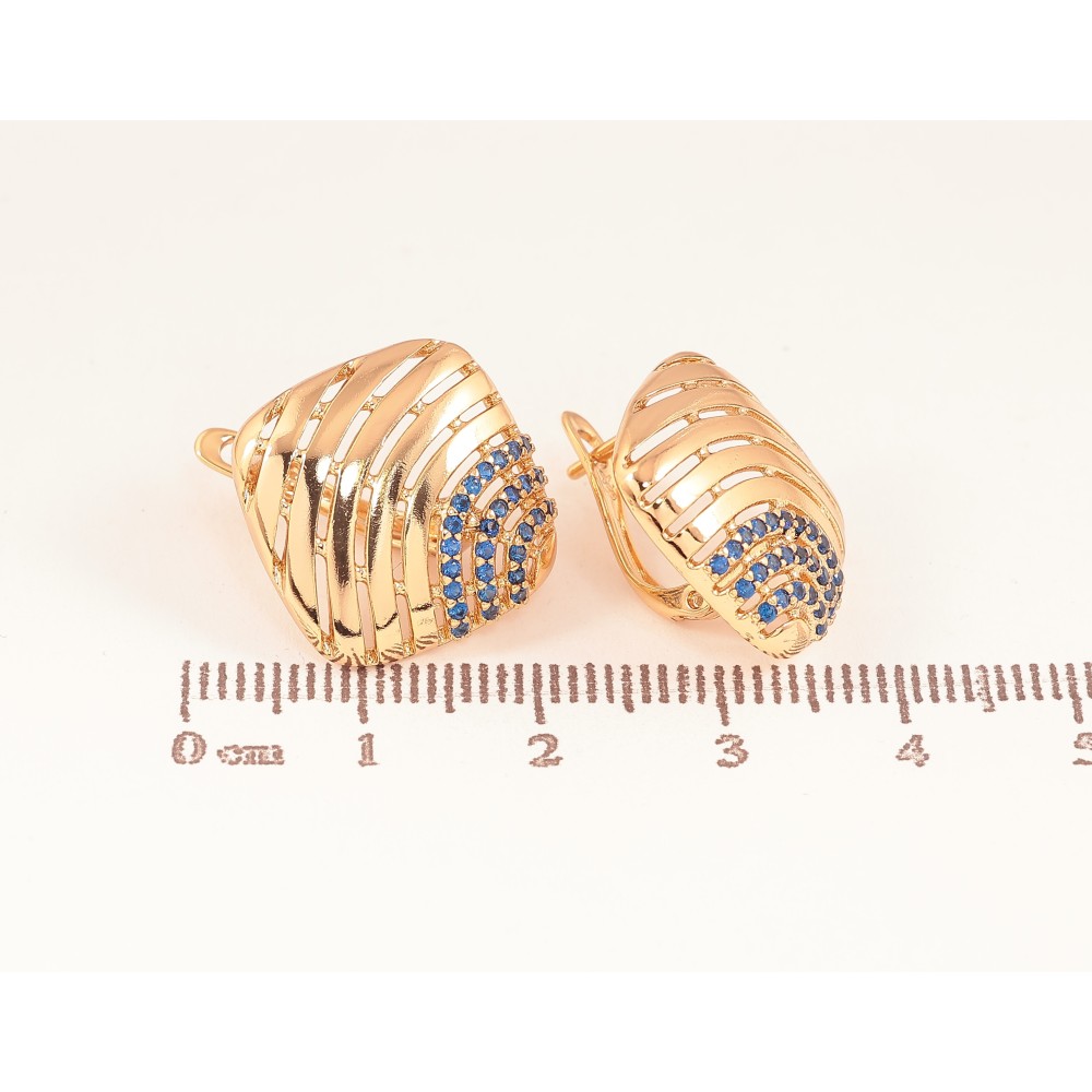 Сережки Xuping колір Позолота 18К англійський замок "Ромби із синіми кристалами"