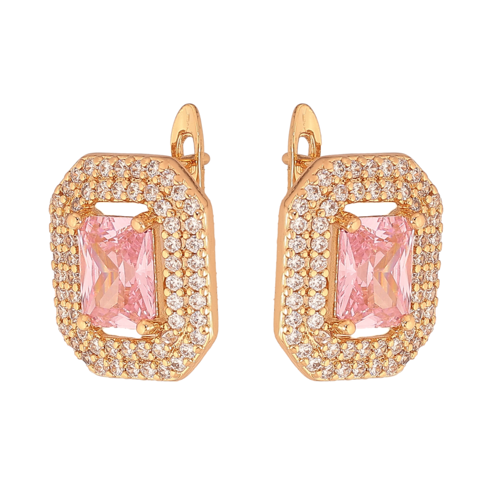 Сережки Xuping колір Позолота 18К англійський замок "Рожеві кристали з інкрустацією"