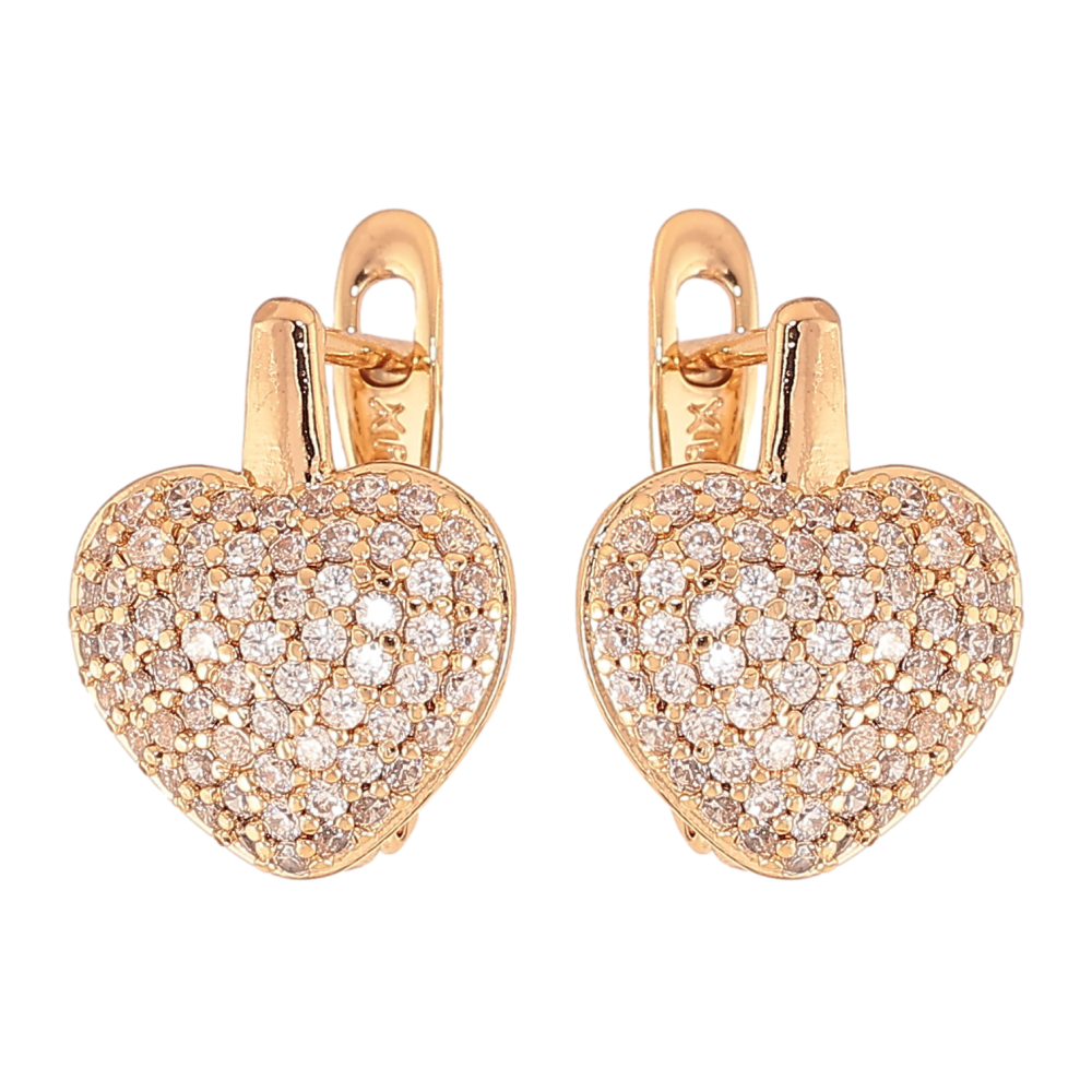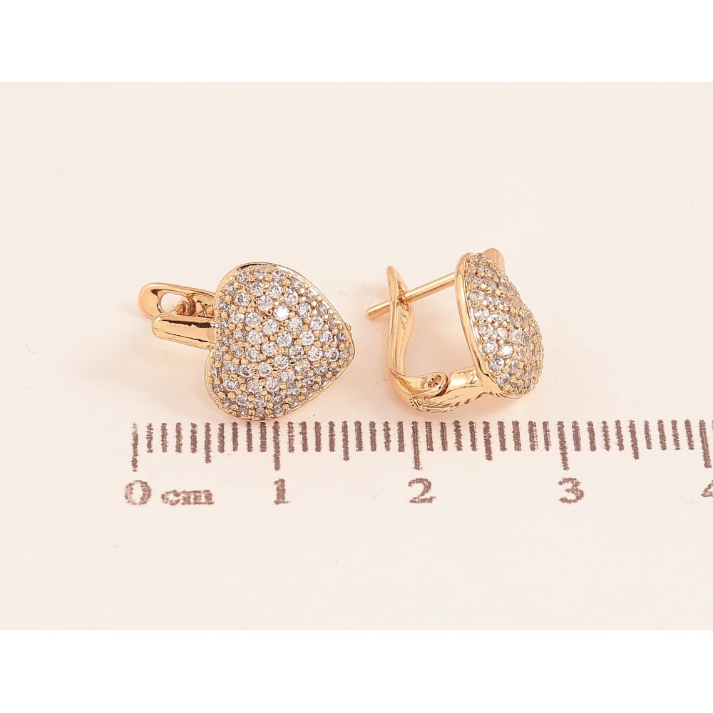 Сережки Xuping колір Позолота 18К англійський замок "Сердечки з інкрустацією кристалами"