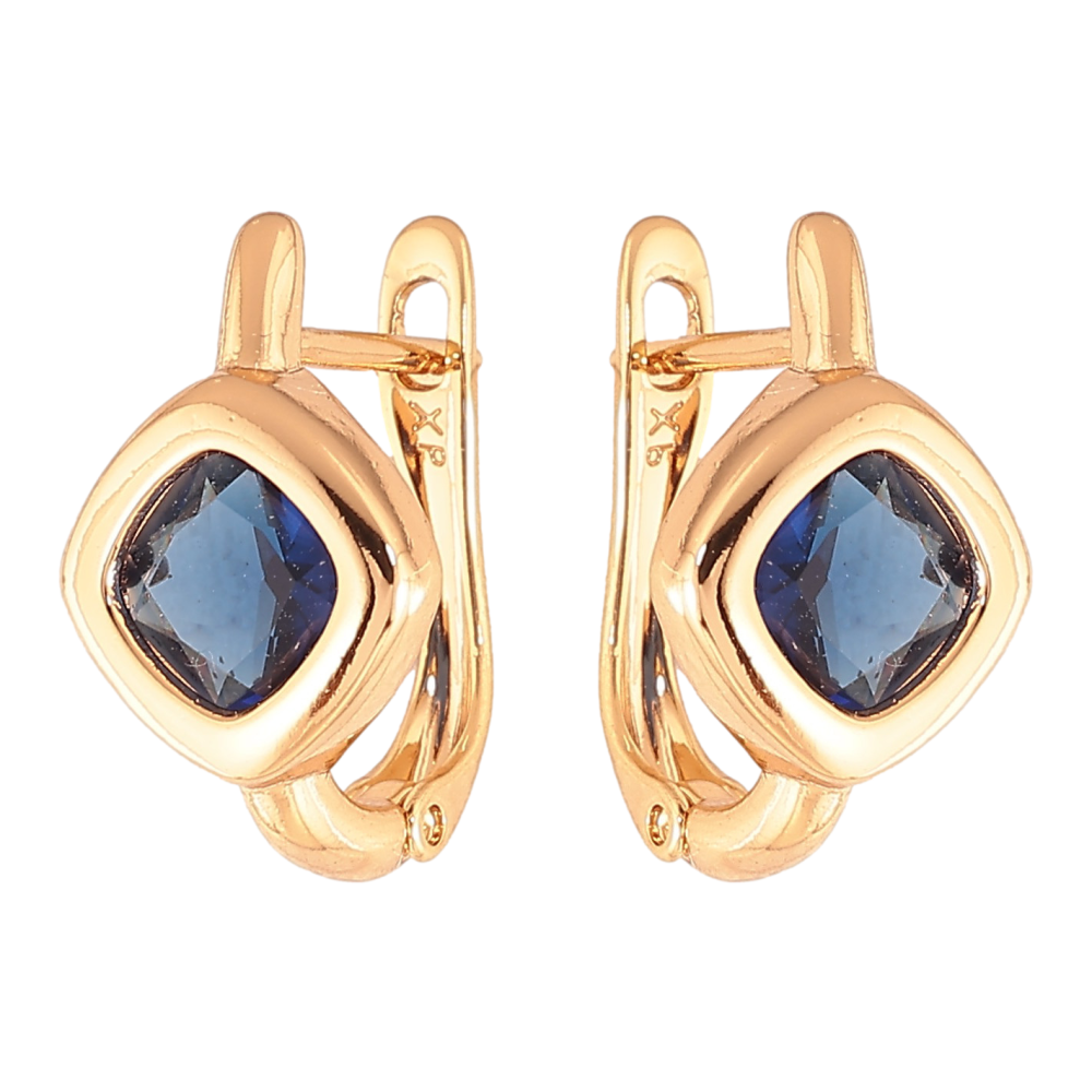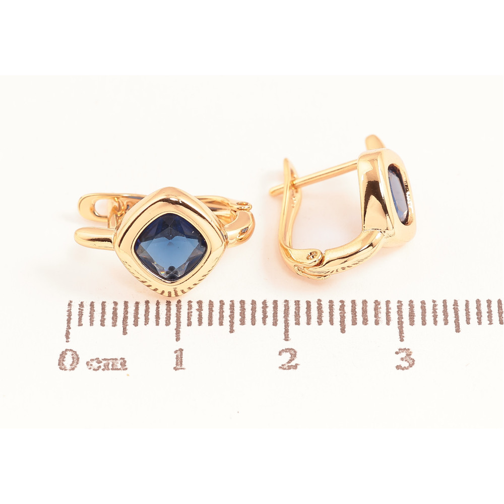 Сережки Xuping колір Позолота 18K англійський замок "Сині кристальні ромби"