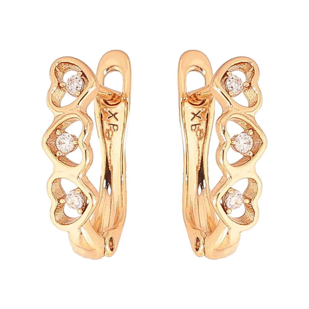 Сережки Xuping колір Позолота 18K англійський замок "Візерунок сердечка з кристалами"
