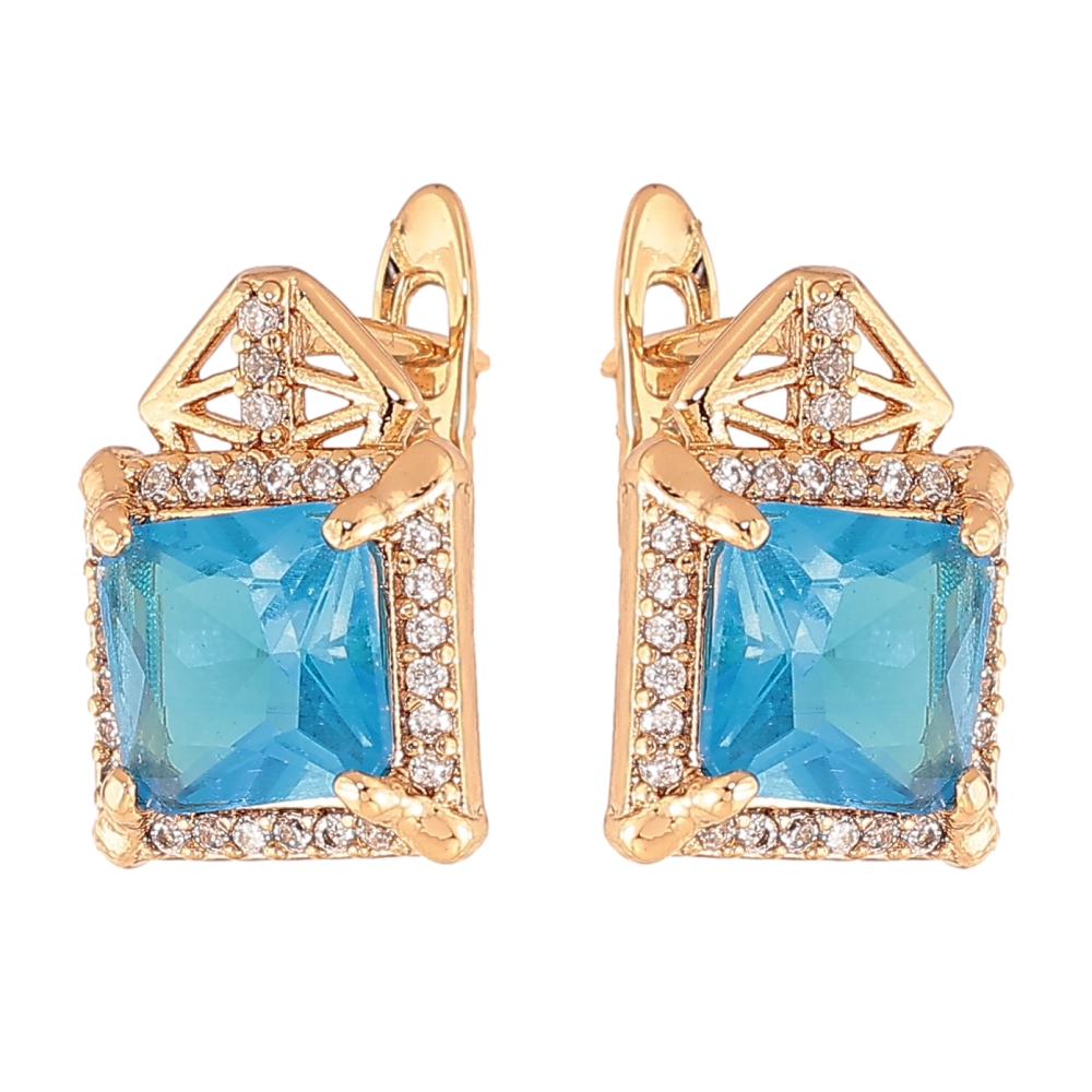 Сережки Xuping колір Позолота 18K англійський замок "Візерунок з блакитними кристалами"