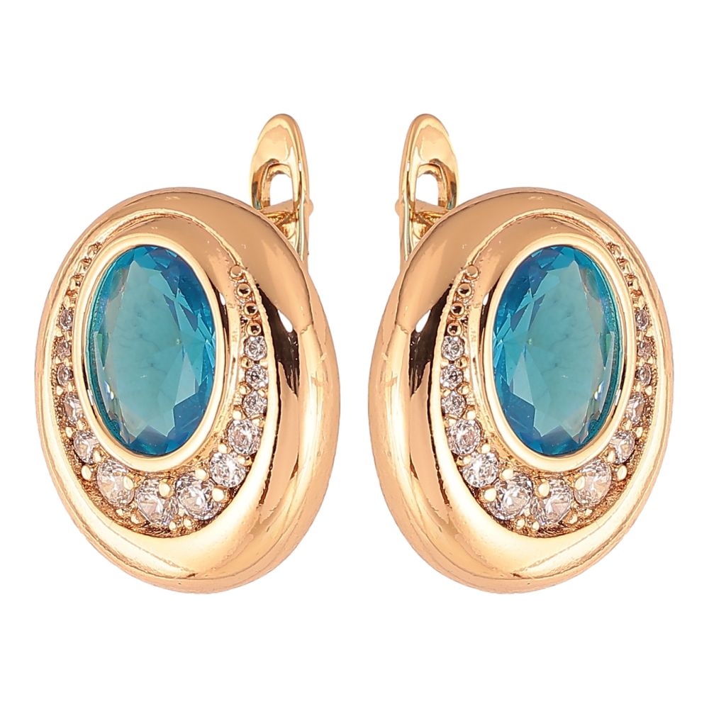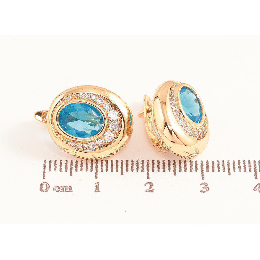 Сережки Xuping колір Позолота 18K англійський замок "Візерунок з блакитними кристалами"