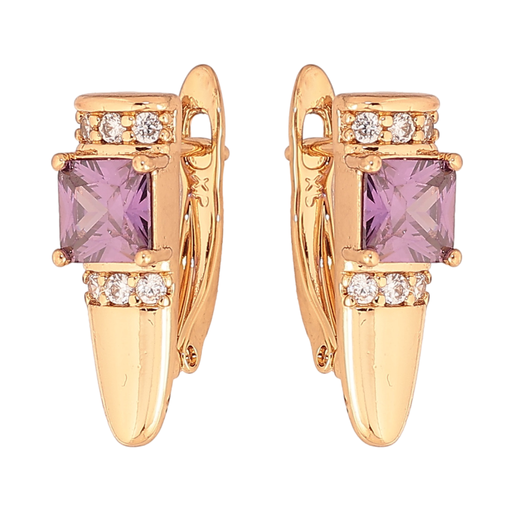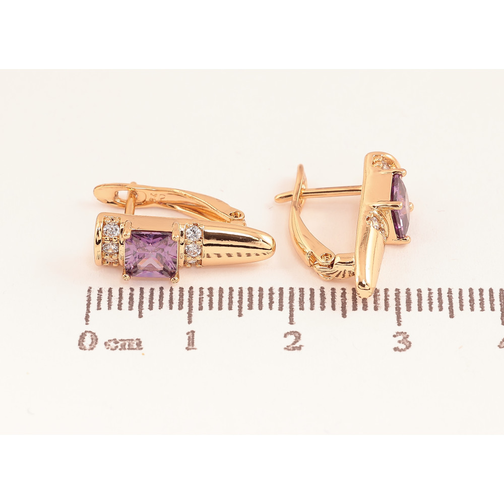 Сережки Xuping колір Позолота 18K англійський замок "Візерунок з бузковими кристалами"