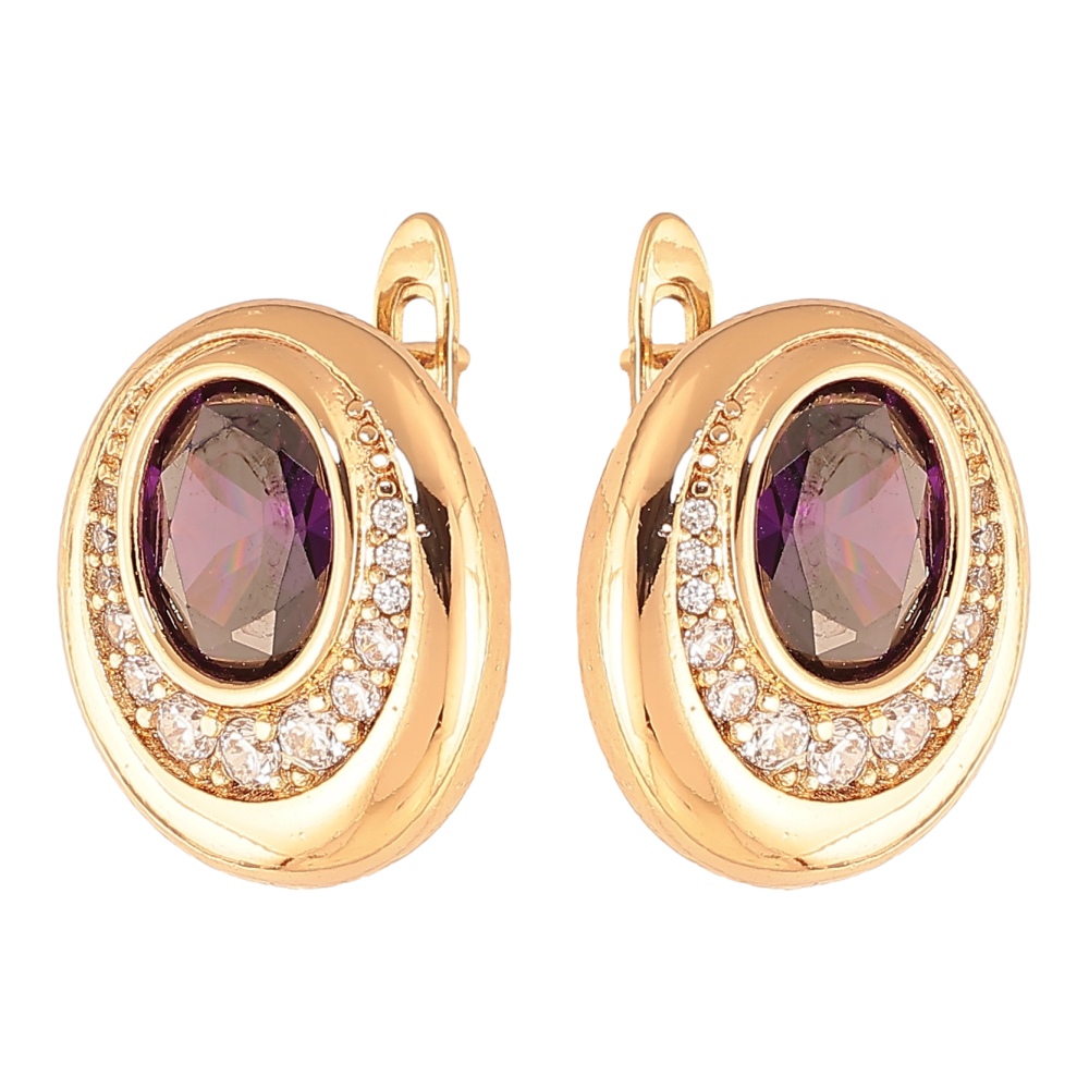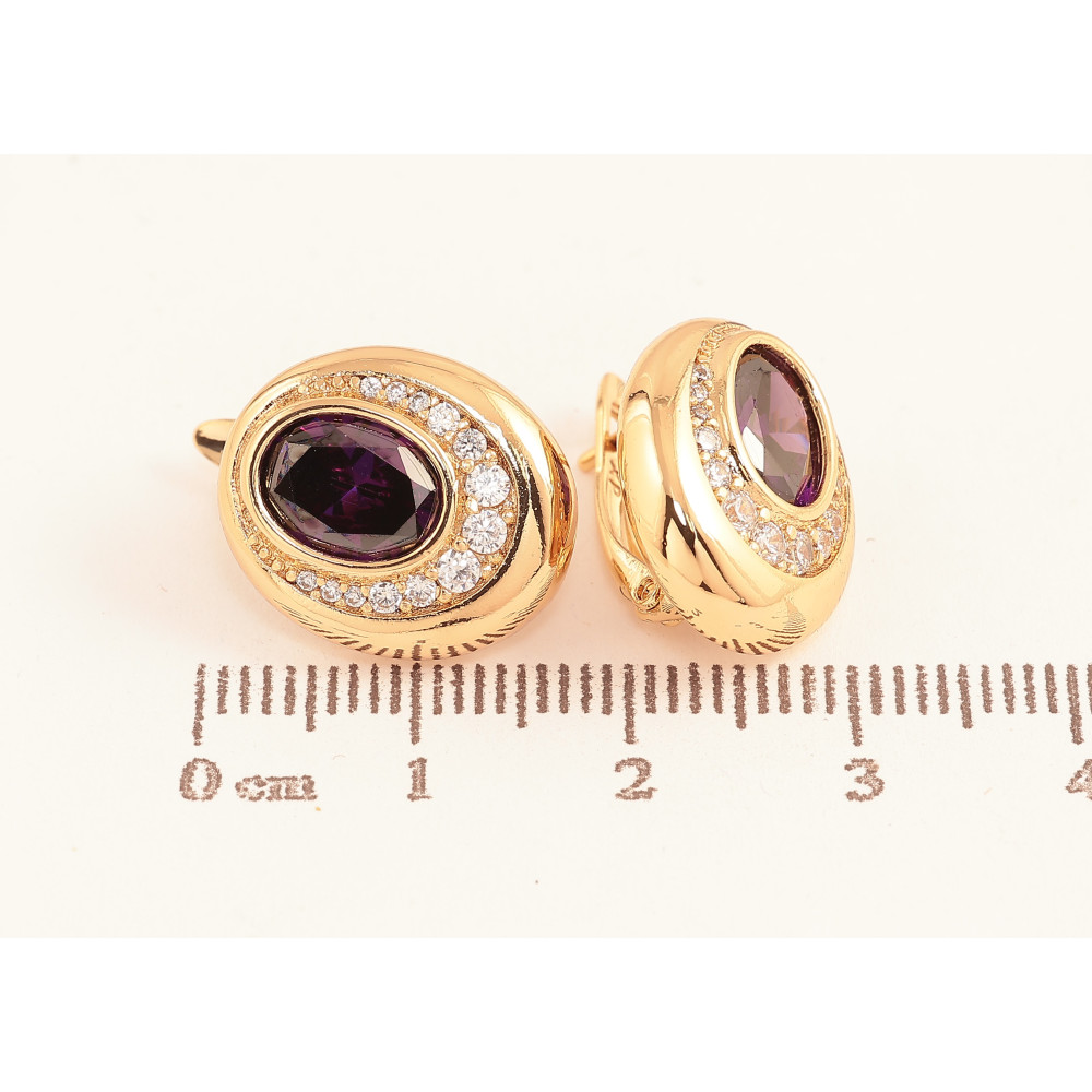 Сережки Xuping колір Позолота 18K англійський замок "Візерунок з бузковими кристалами"