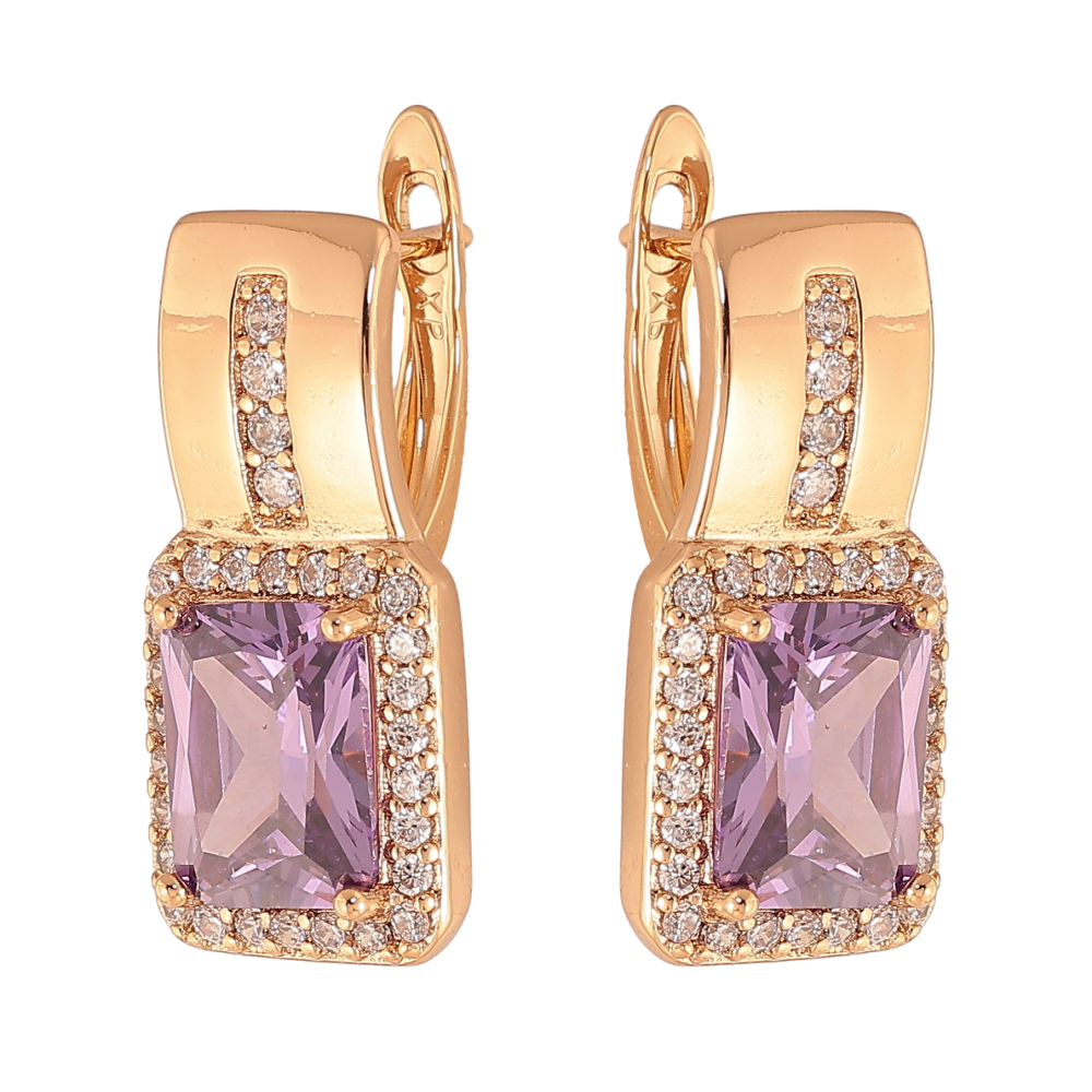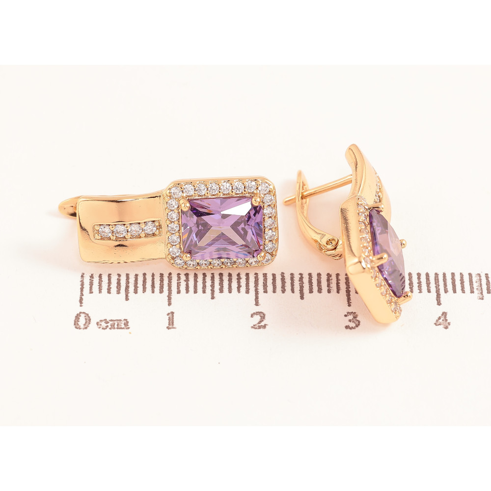 Сережки Xuping колір Позолота 18K англійський замок "Візерунок з бузковими кристалами"