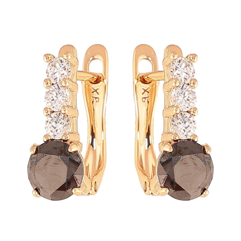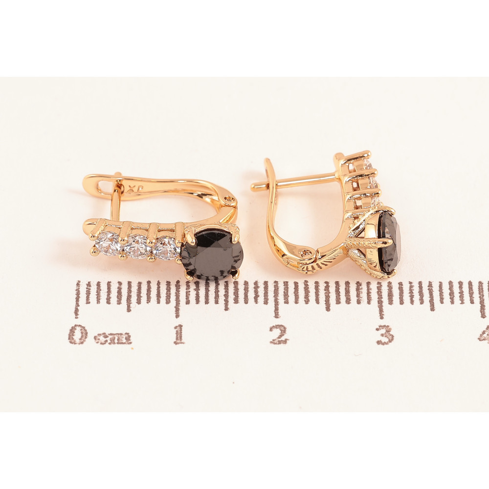Сережки Xuping колір Позолота 18K англійський замок "Візерунок з чорними кристалами"