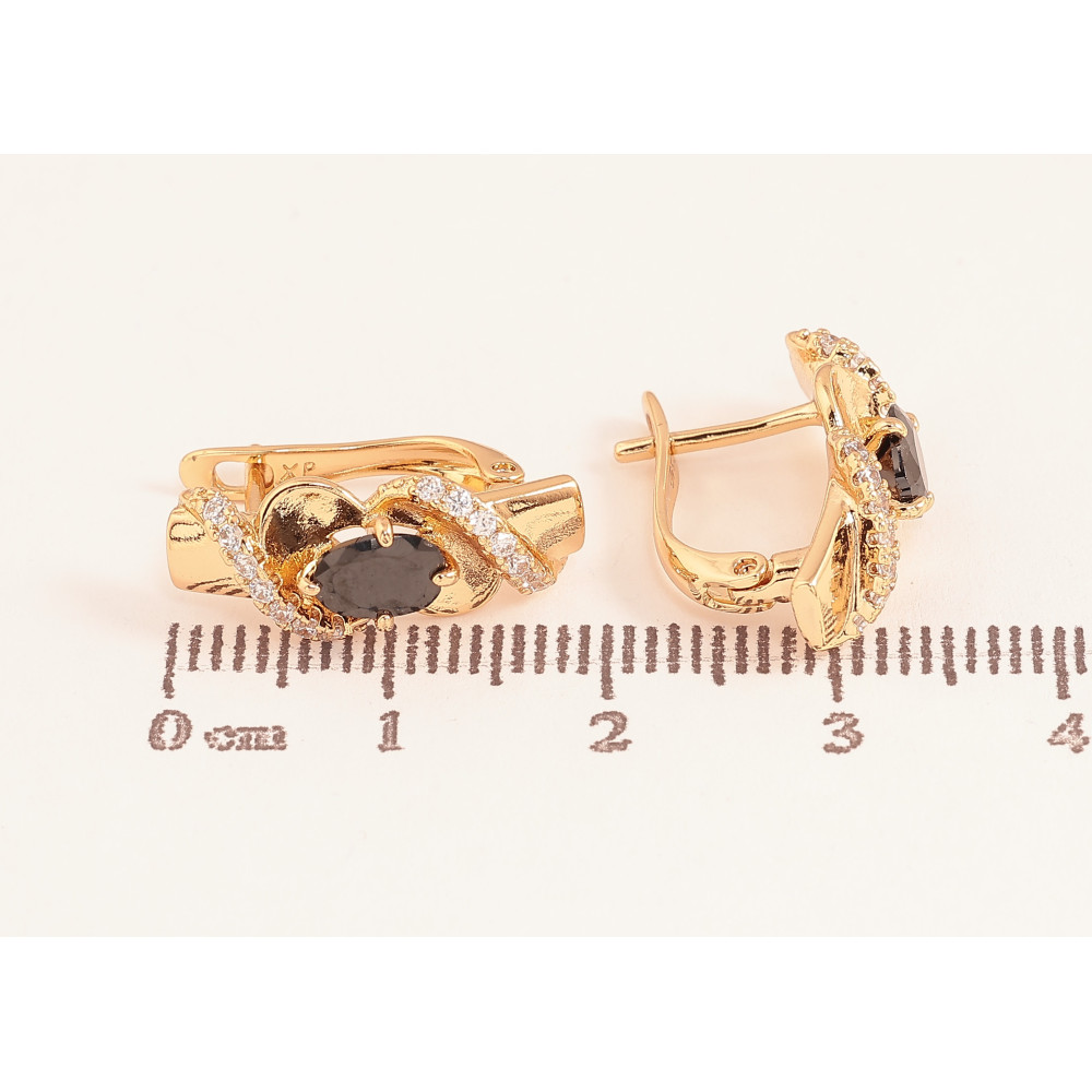 Сережки Xuping колір Позолота 18К англійський замок "Візерунок з чорними кристалами"