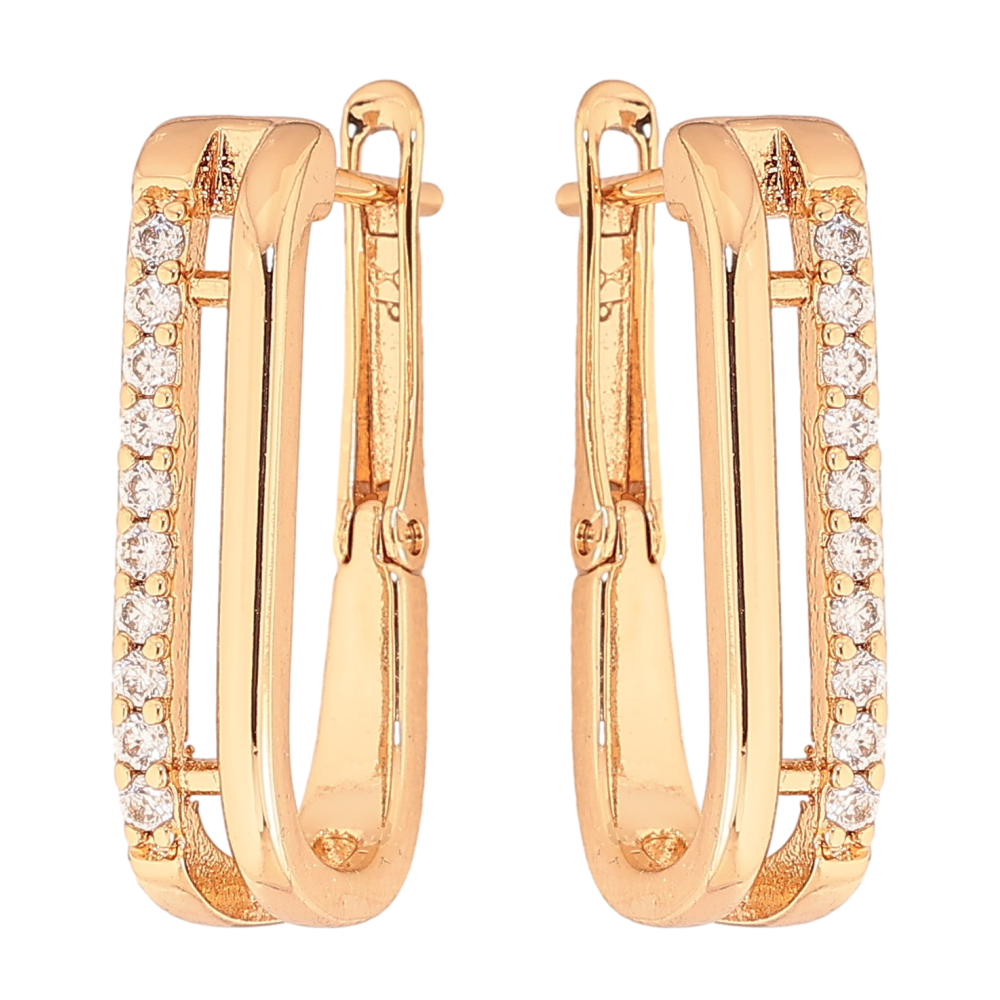 Сережки Xuping колір Позолота 18K англійський замок "Візерунок з доріжками кристалів"