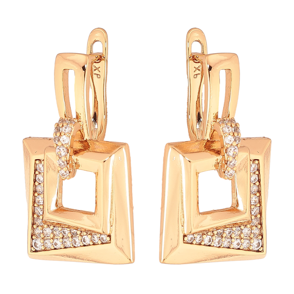 Сережки Xuping колір Позолота 18K англійський замок "Візерунок з кристалами"