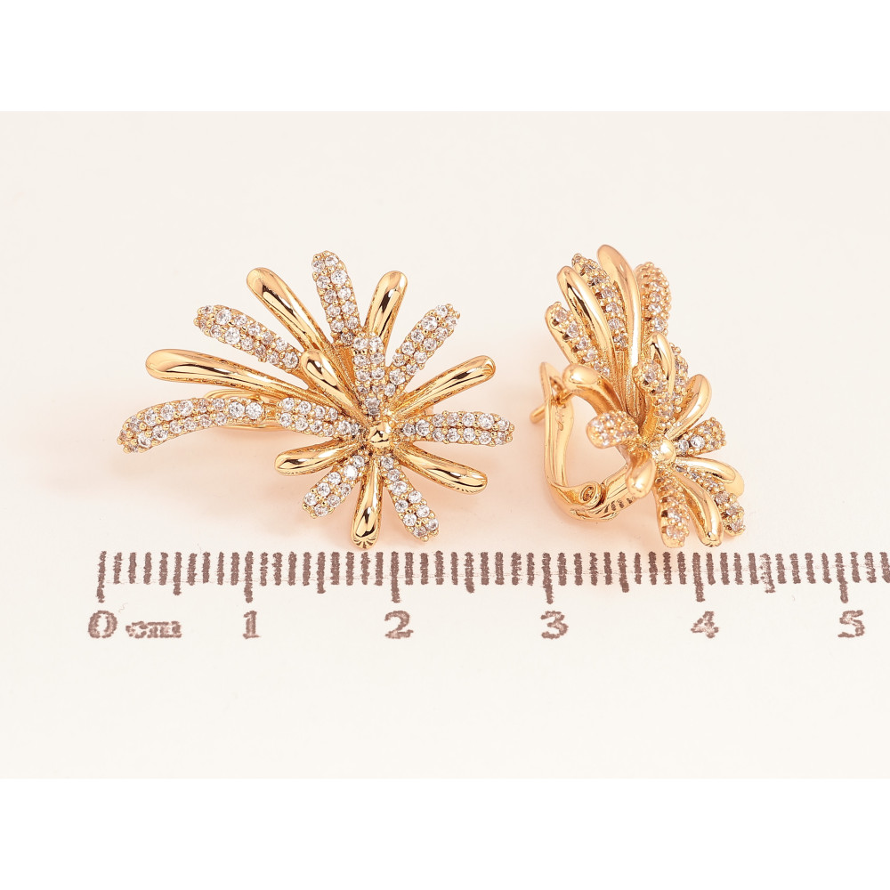 Сережки Xuping колір Позолота 18К англійський замок "Візерунок з кристалами" фото №1