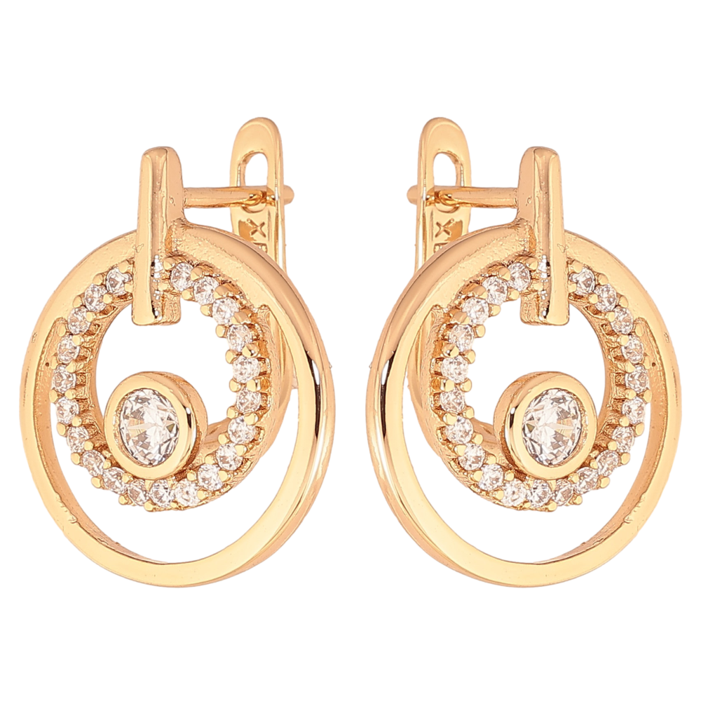 Сережки Xuping колір Позолота 18К англійський замок "Візерунок з кристалами"