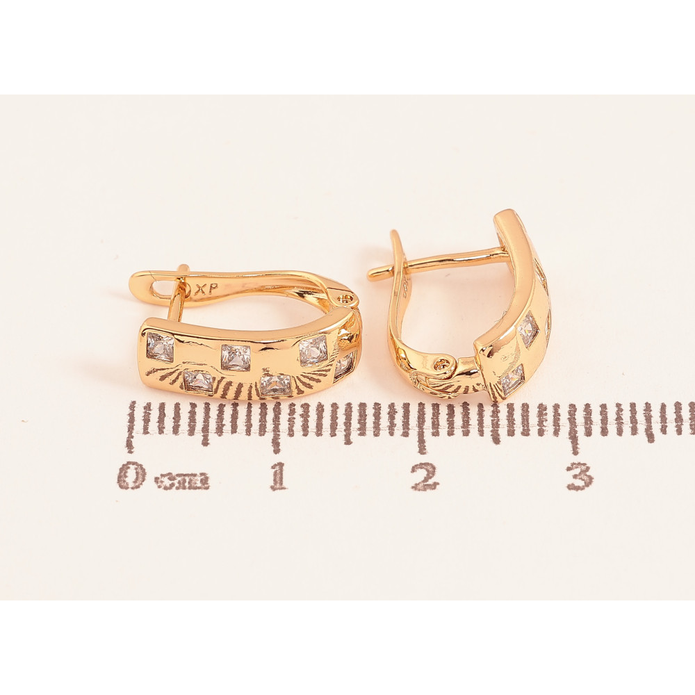 Сережки Xuping колір Позолота 18К англійський замок "Візерунок з кристалами"