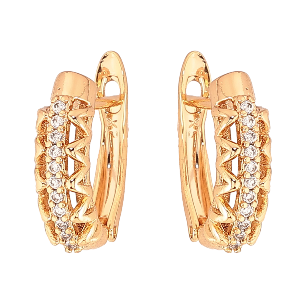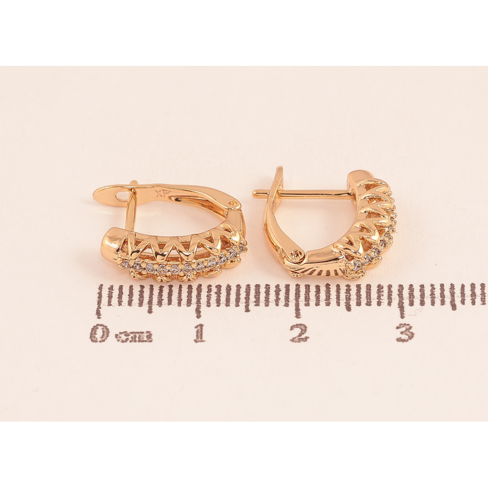 Сережки Xuping колір Позолота 18К англійський замок "Візерунок з кристалами"